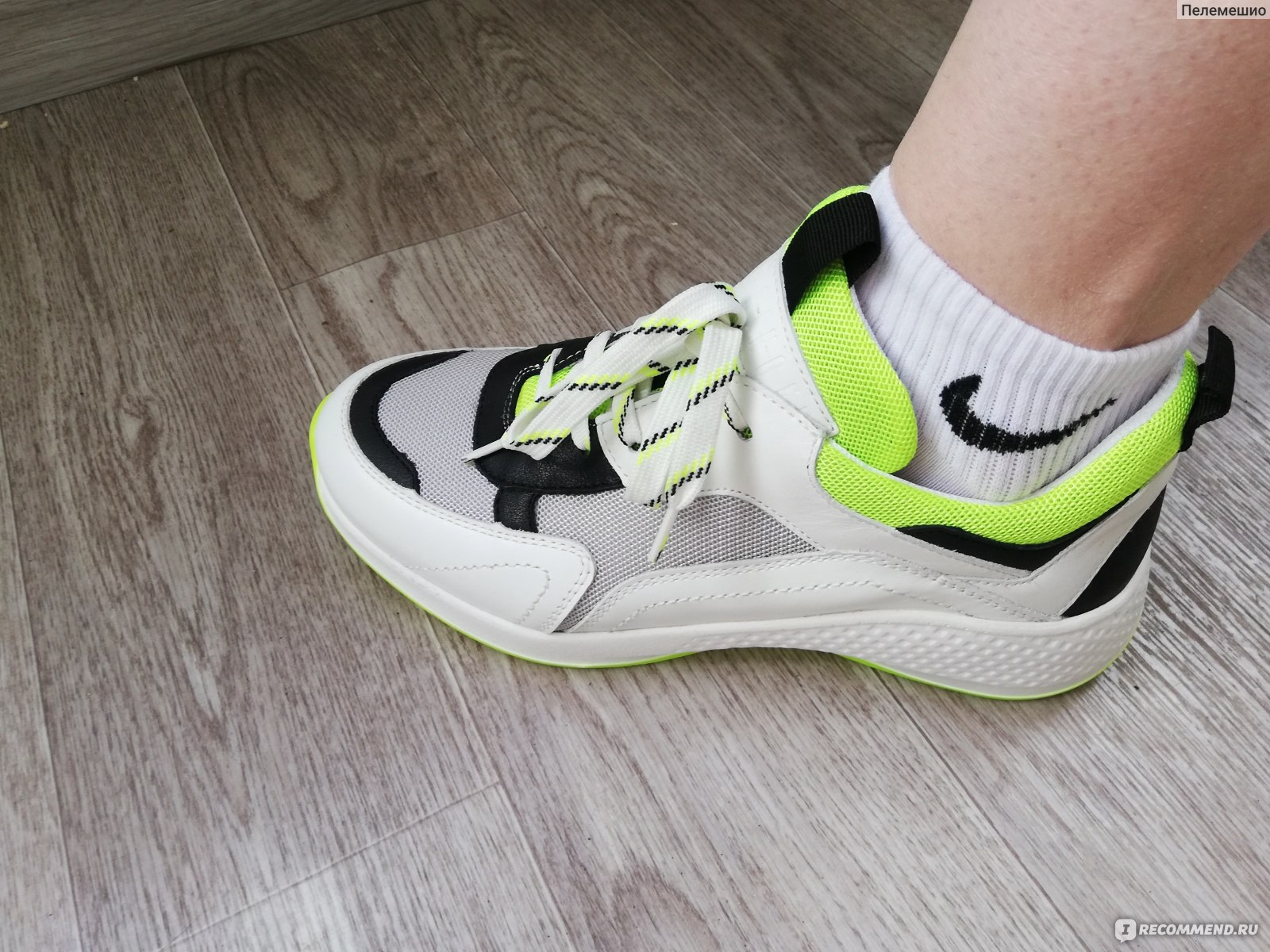 данная модель маломерит, на свой 36 взяла 37, в итоге оказались прям впритык. Из дефектов желтизна подошвы и сырьевые пороки (на одном кроссовке скукожена кожа)