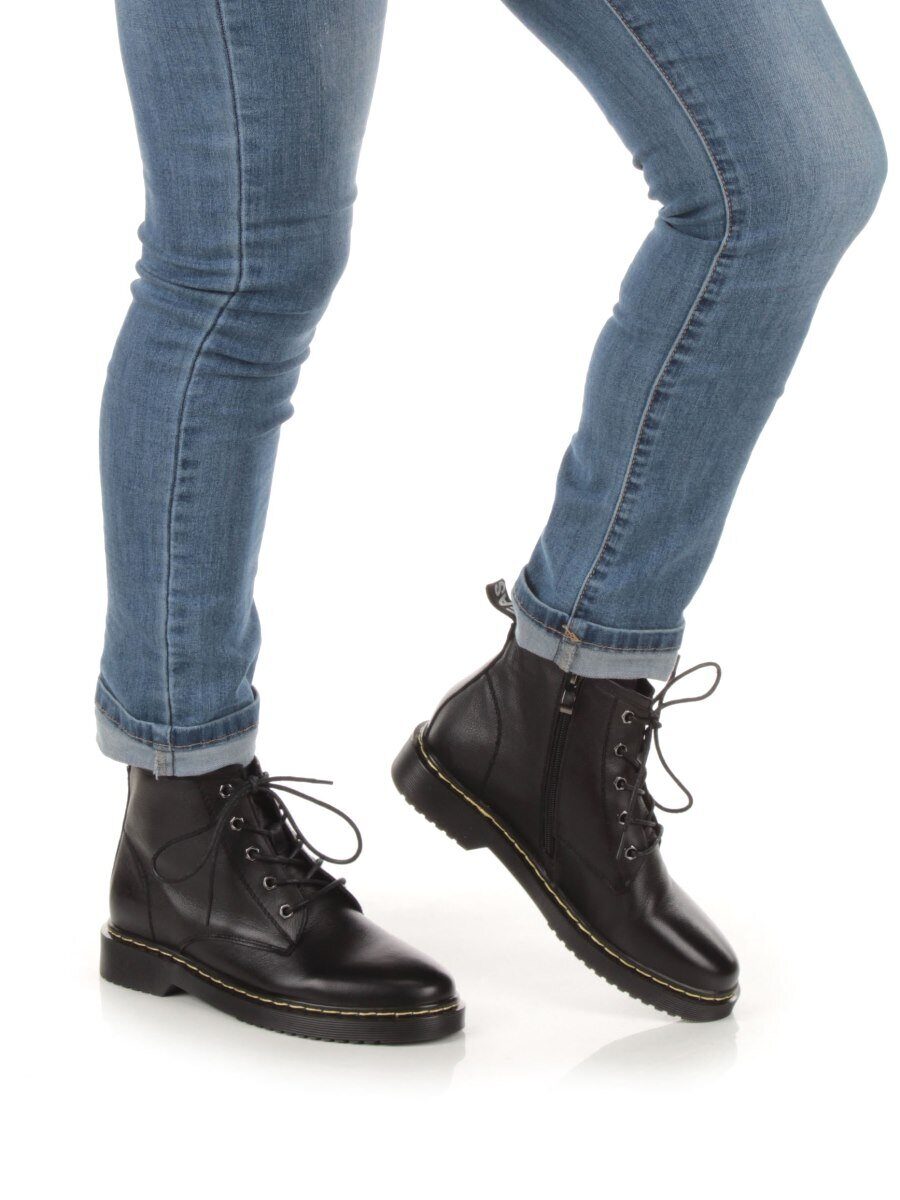 Черный Ботинки демисезонные женские (натуральная кожа, байка)