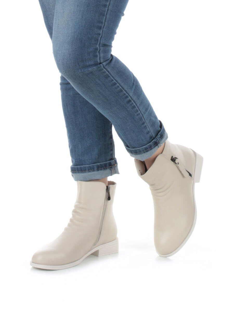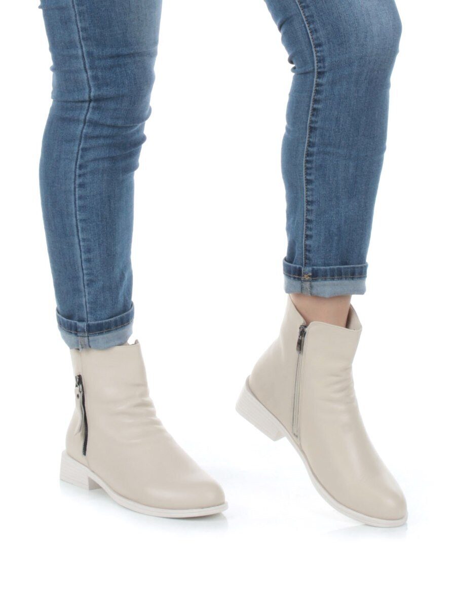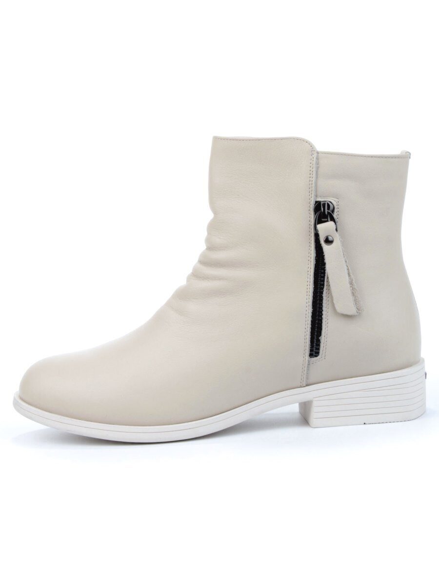 Бежевый Ботинки демисезонные женские (натуральная кожа, байка)