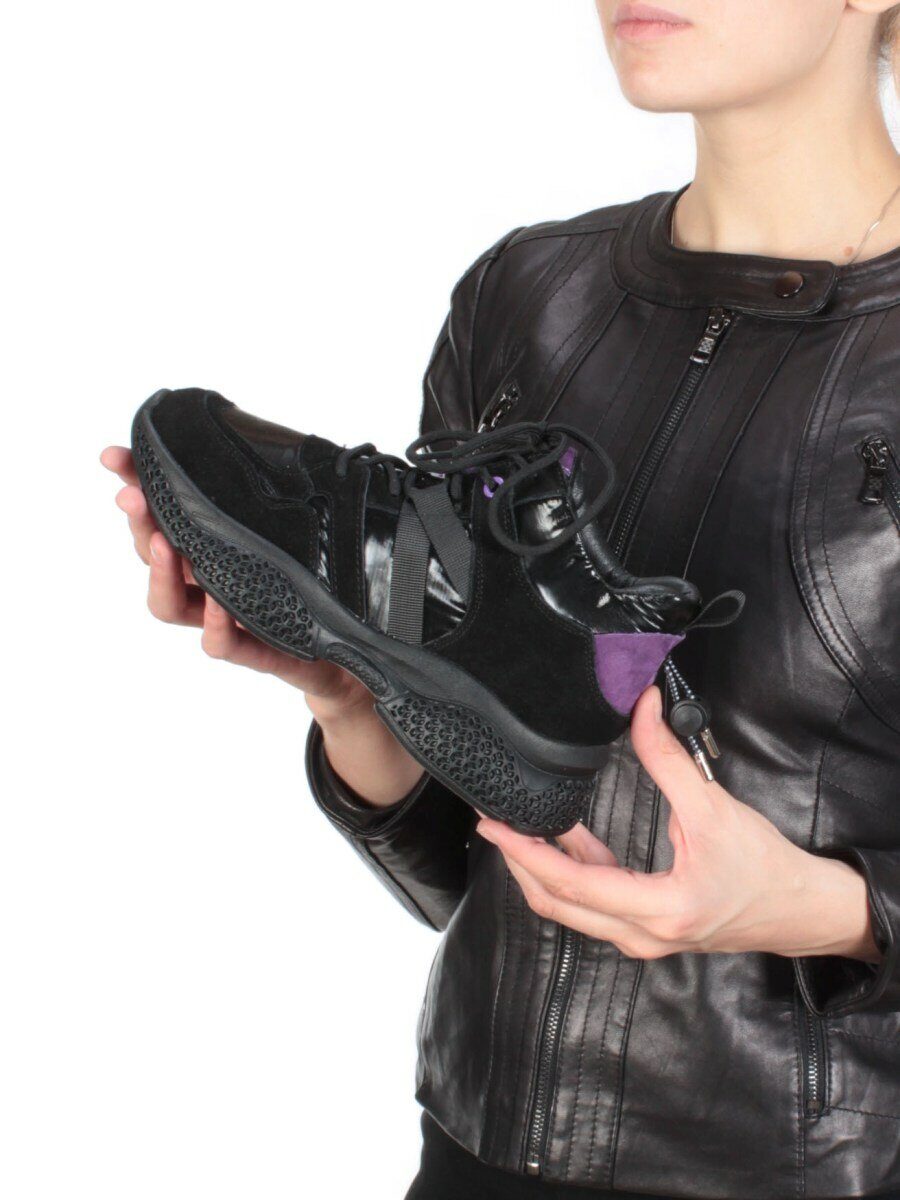 Фиолетовый с черным Ботинки спортивные демисезонные женские (натуральная замша, байка)