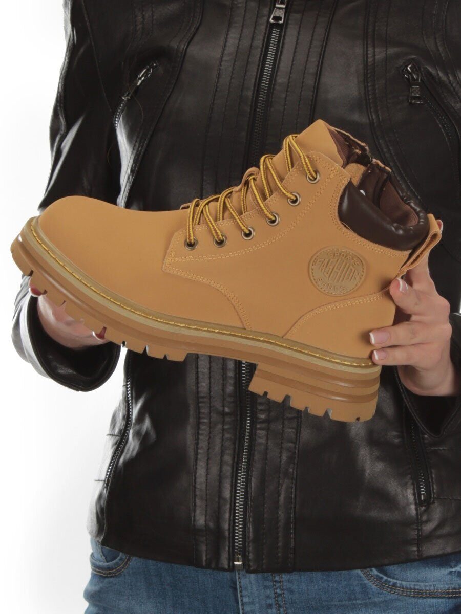 Коричневый Ботинки демисезонные женские (натуральная кожа, байка)