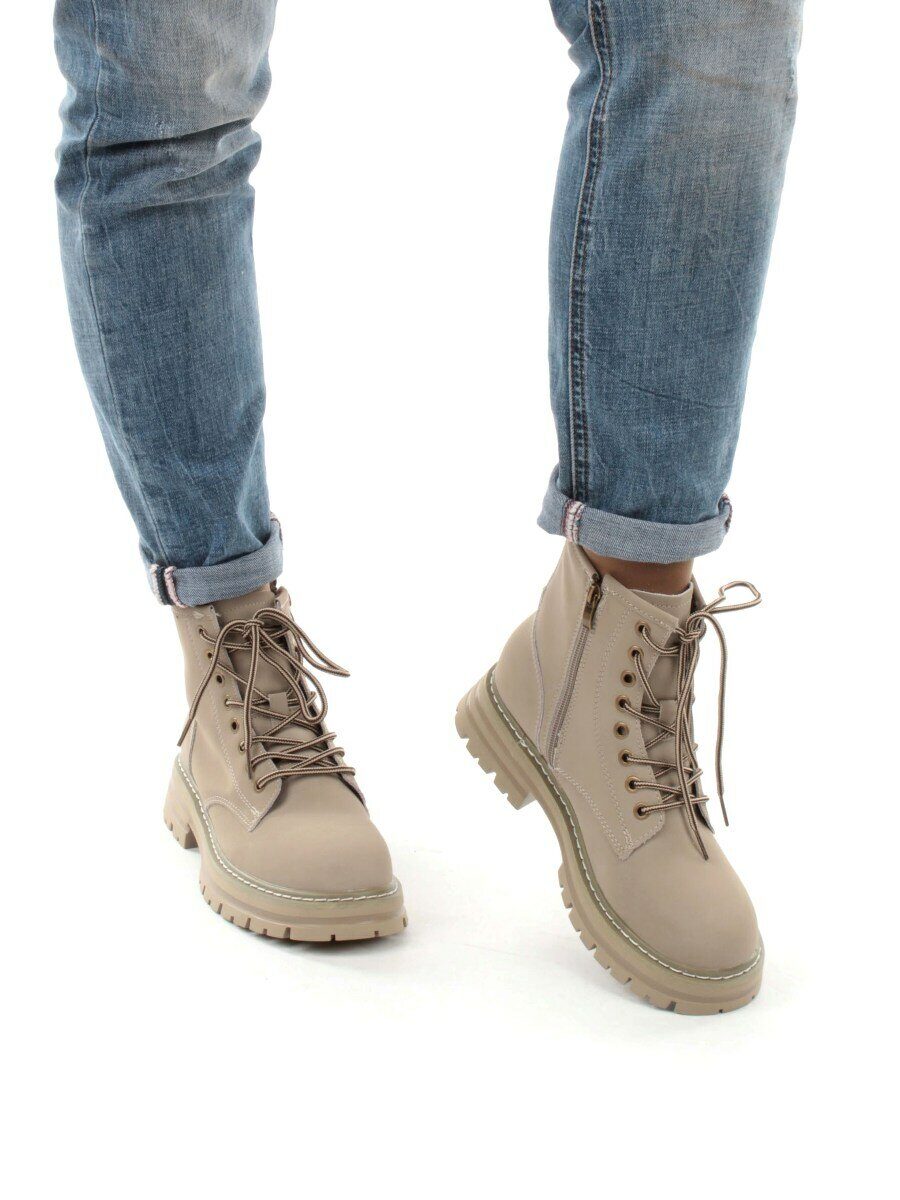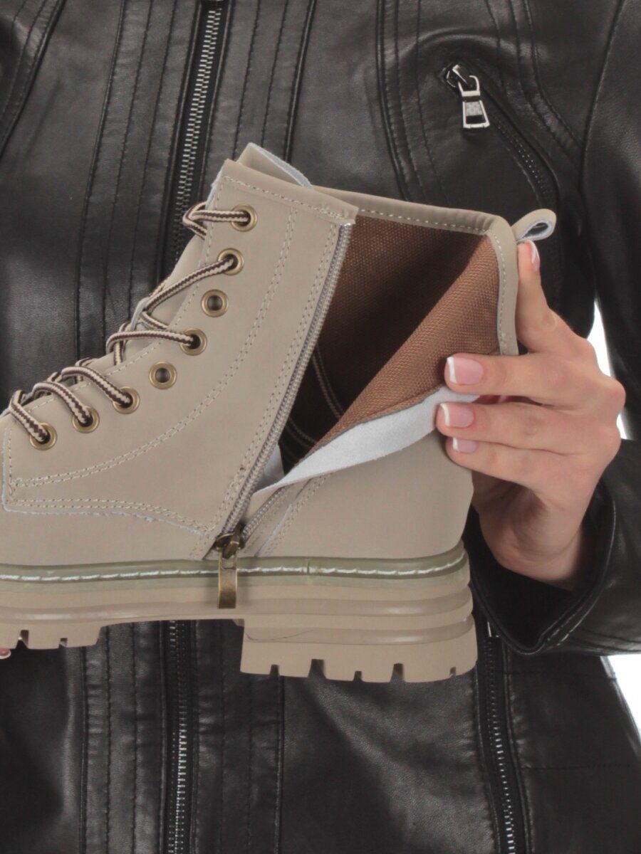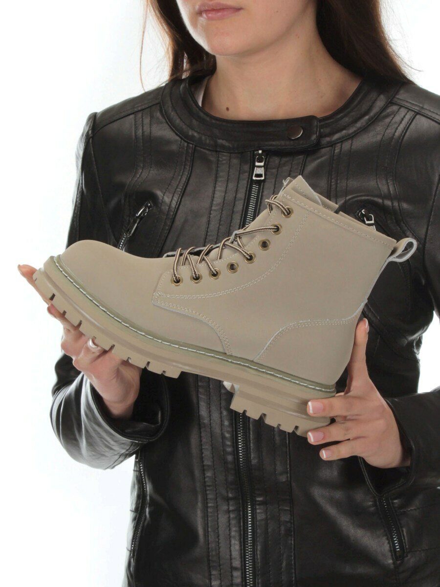 Серо-бежевый Ботинки демисезонные женские (натуральная кожа, байка)