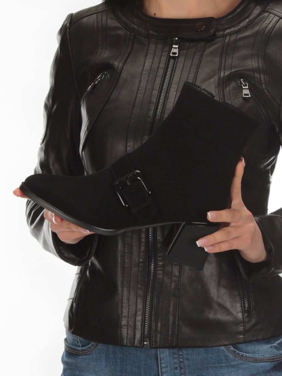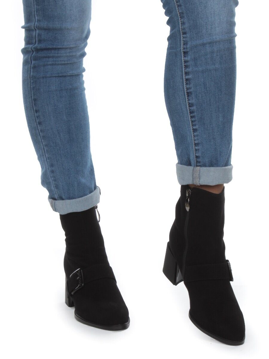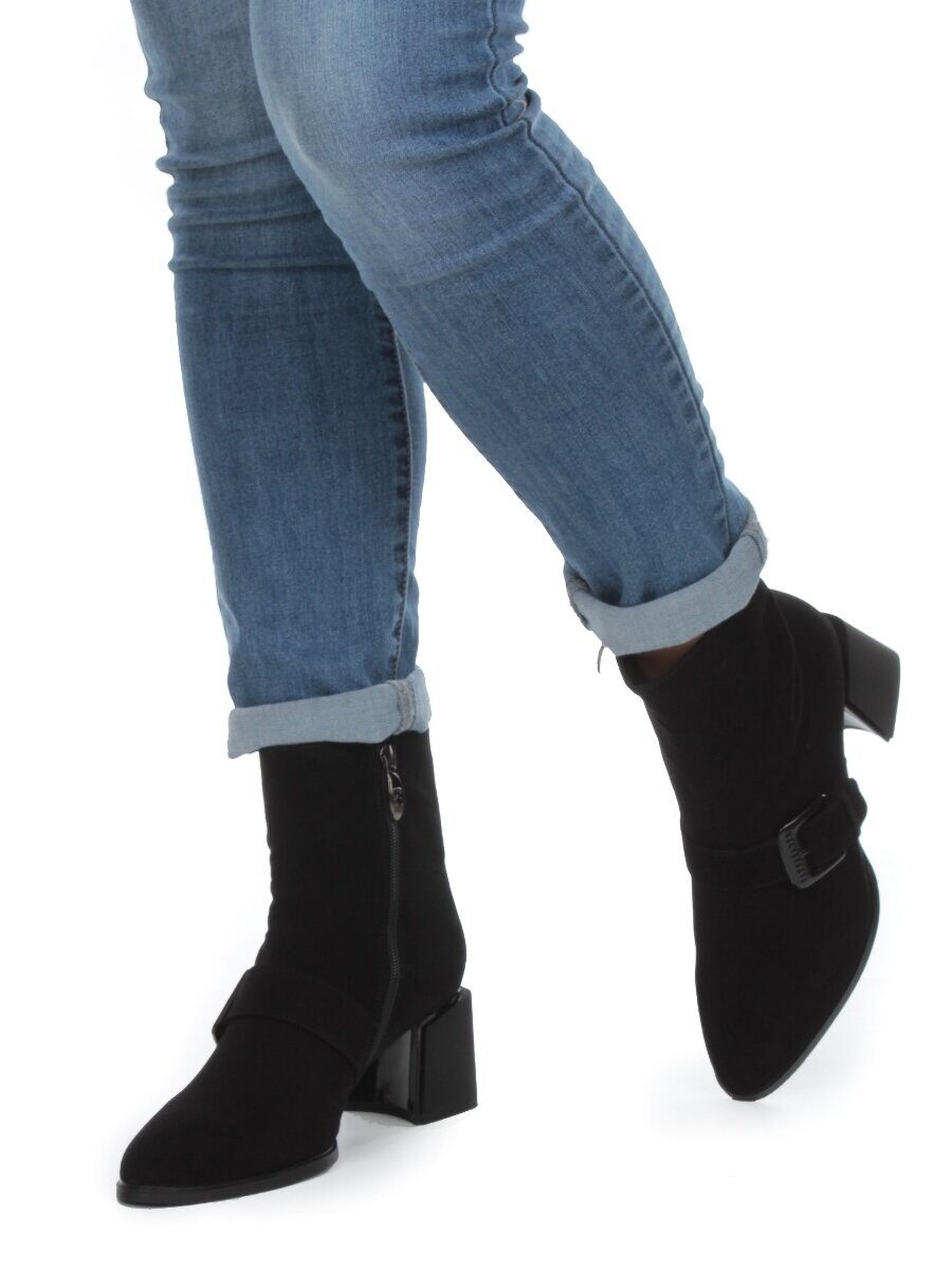 Черный Ботинки демисезонные женские из натуральной замши с байкой
