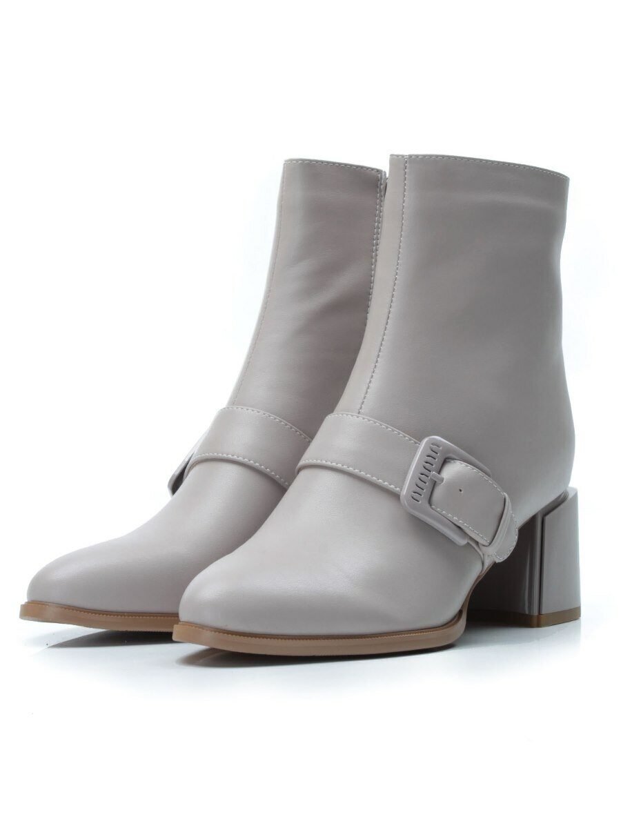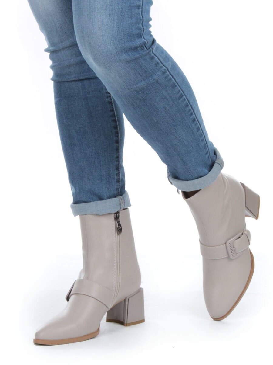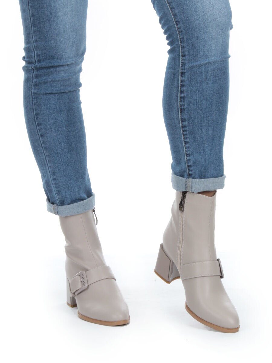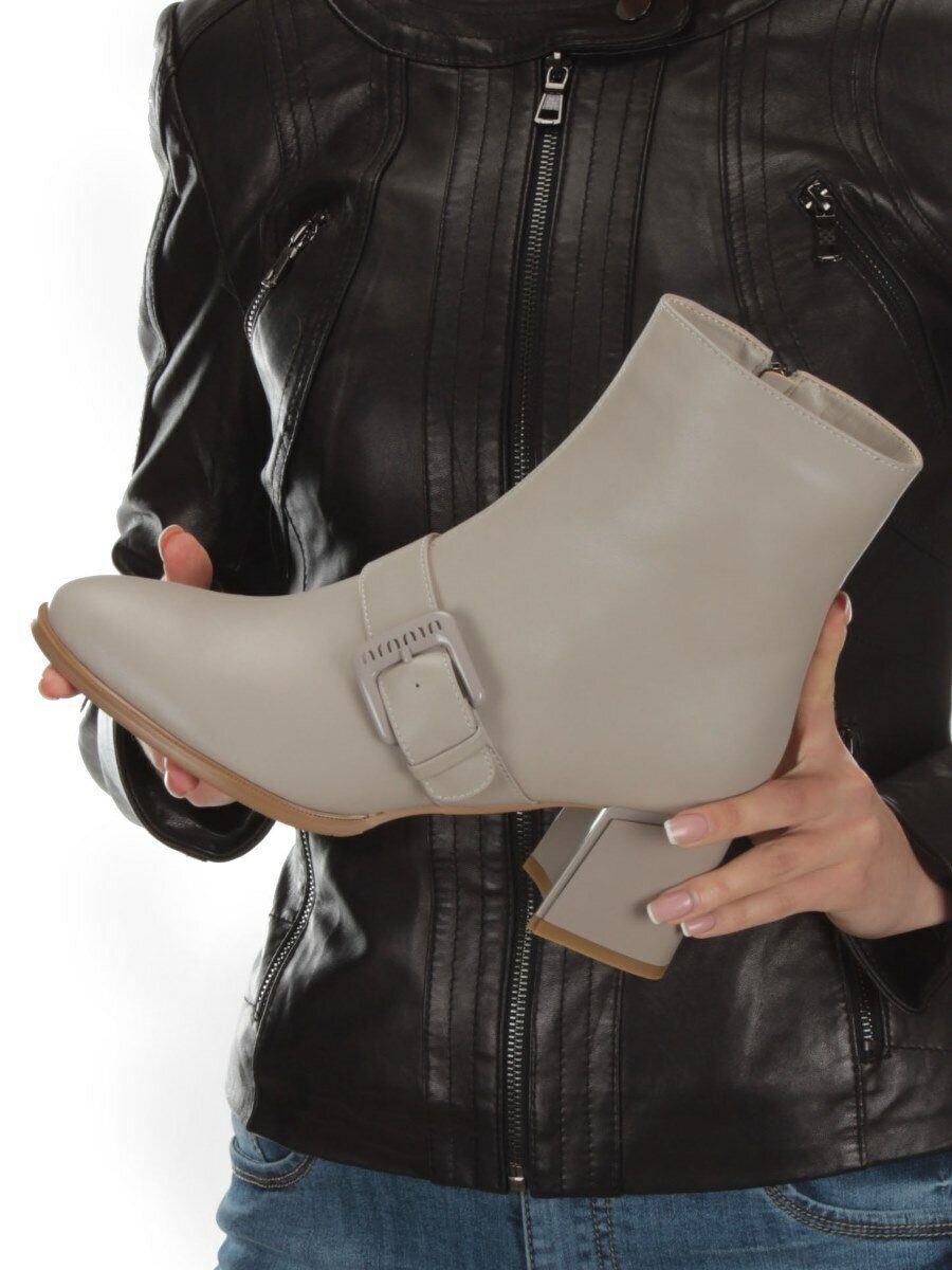 Темно-бежевый Ботинки демисезонные женские (натуральная кожа, байка)