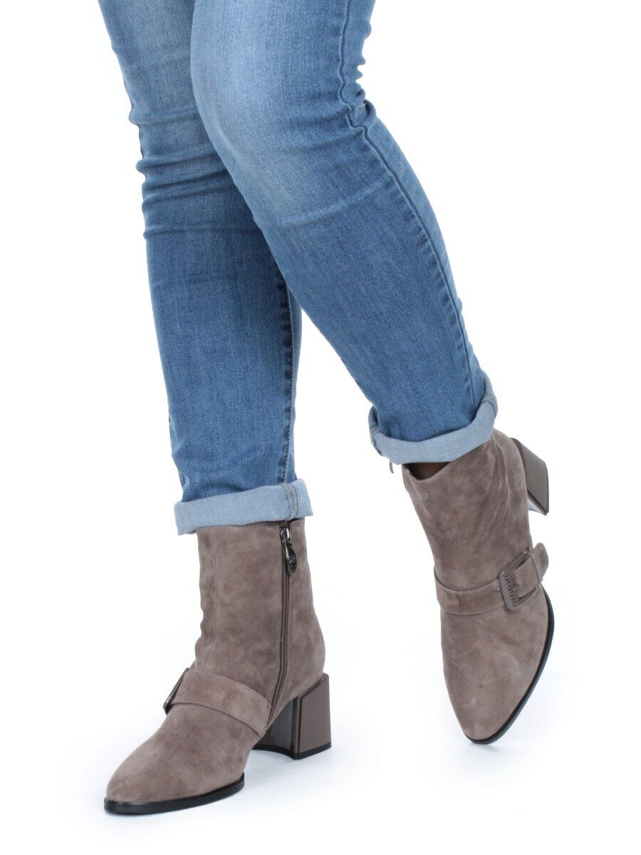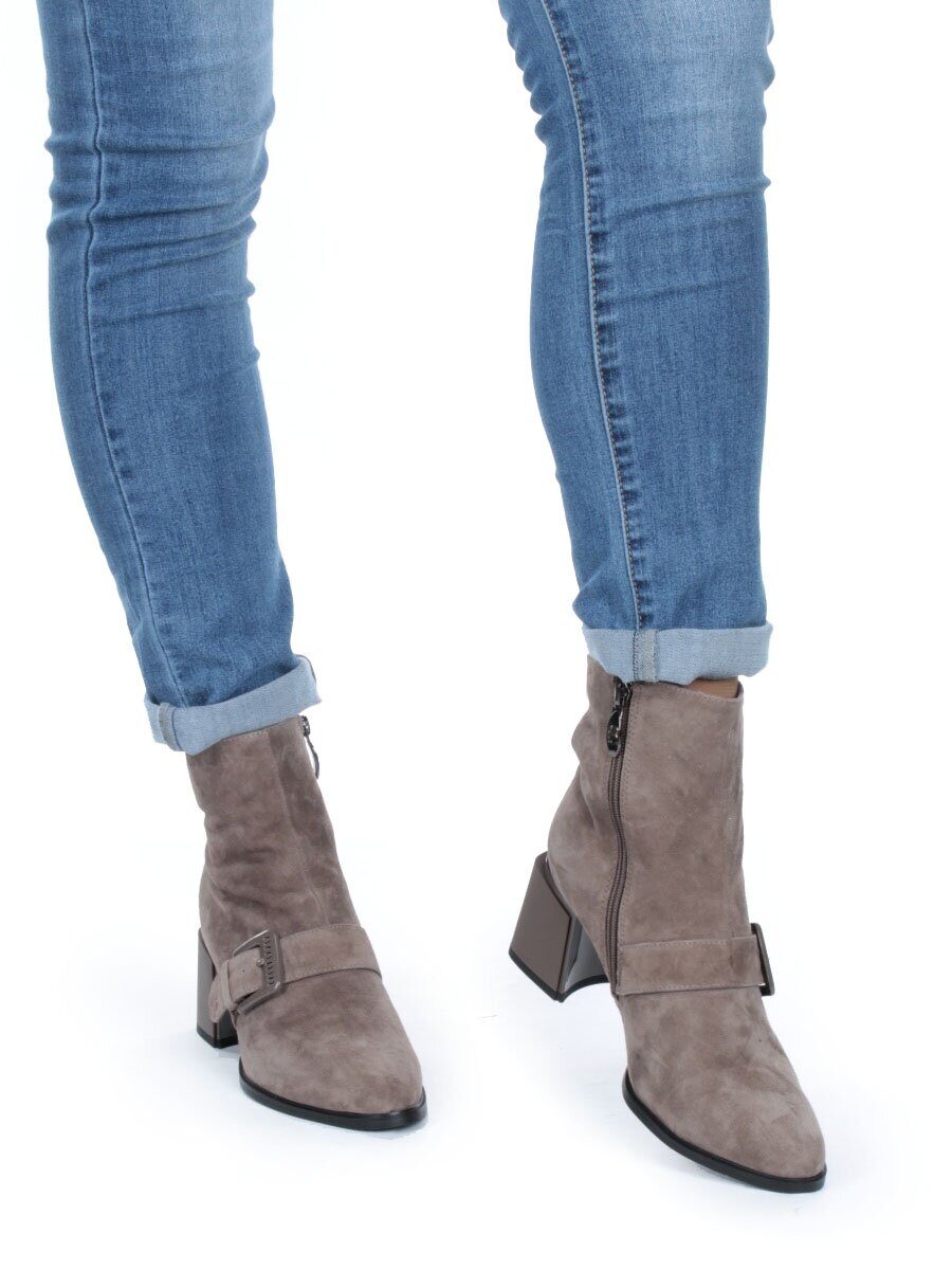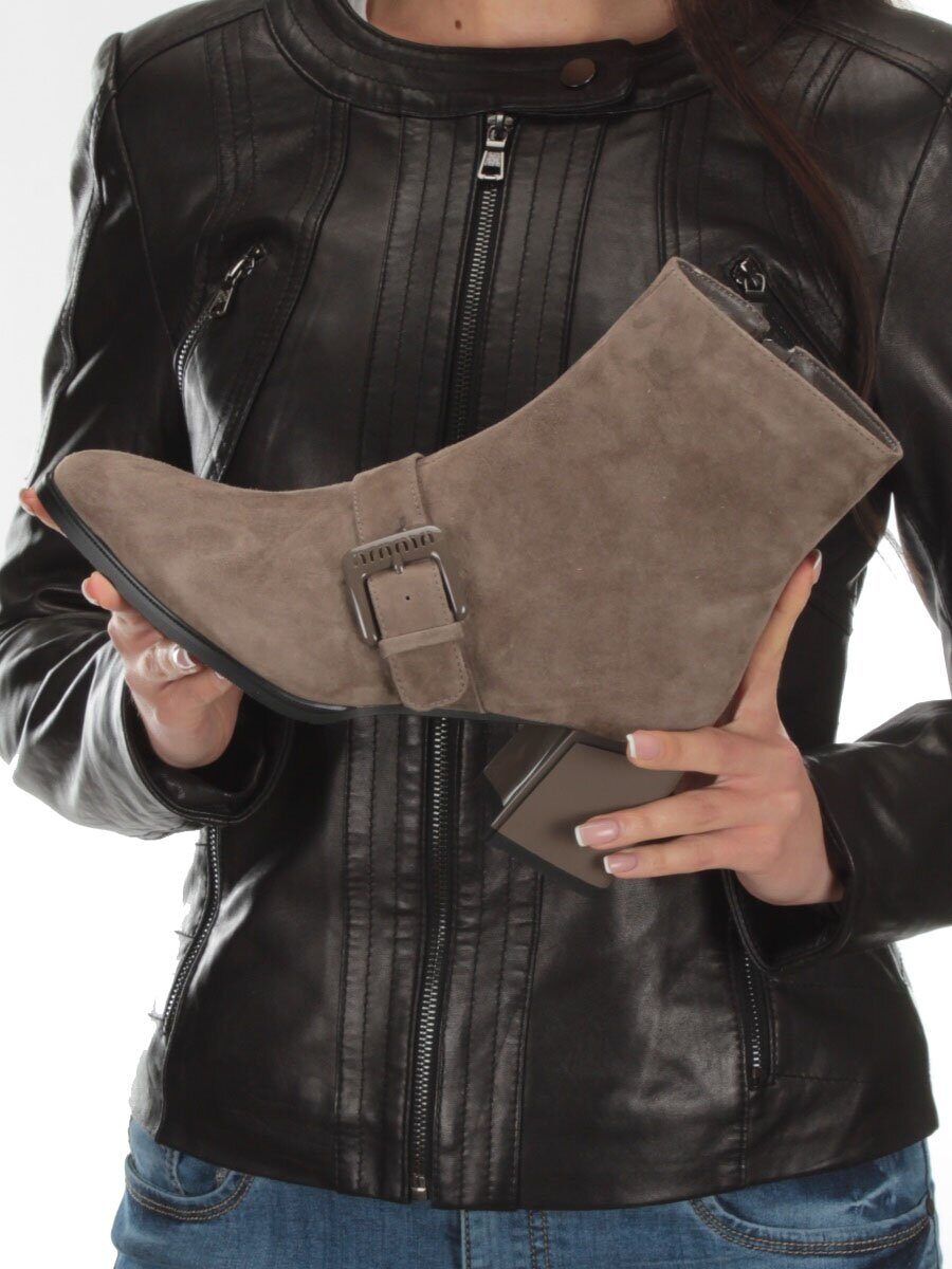Коричневый Ботинки демисезонные женские из натуральной замши с байкой