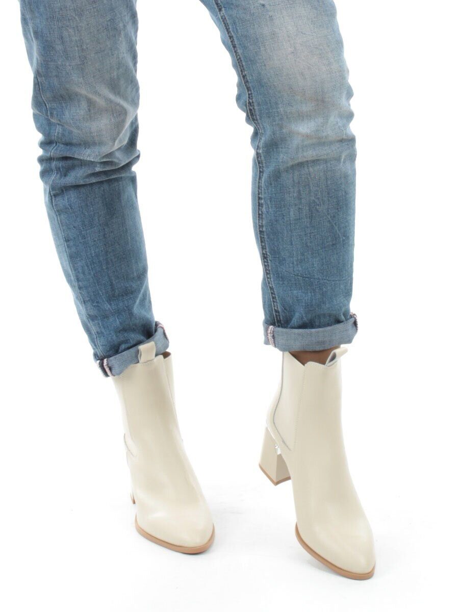 Бежевый Ботинки Челси демисезонные женские (натуральная кожа, байка)