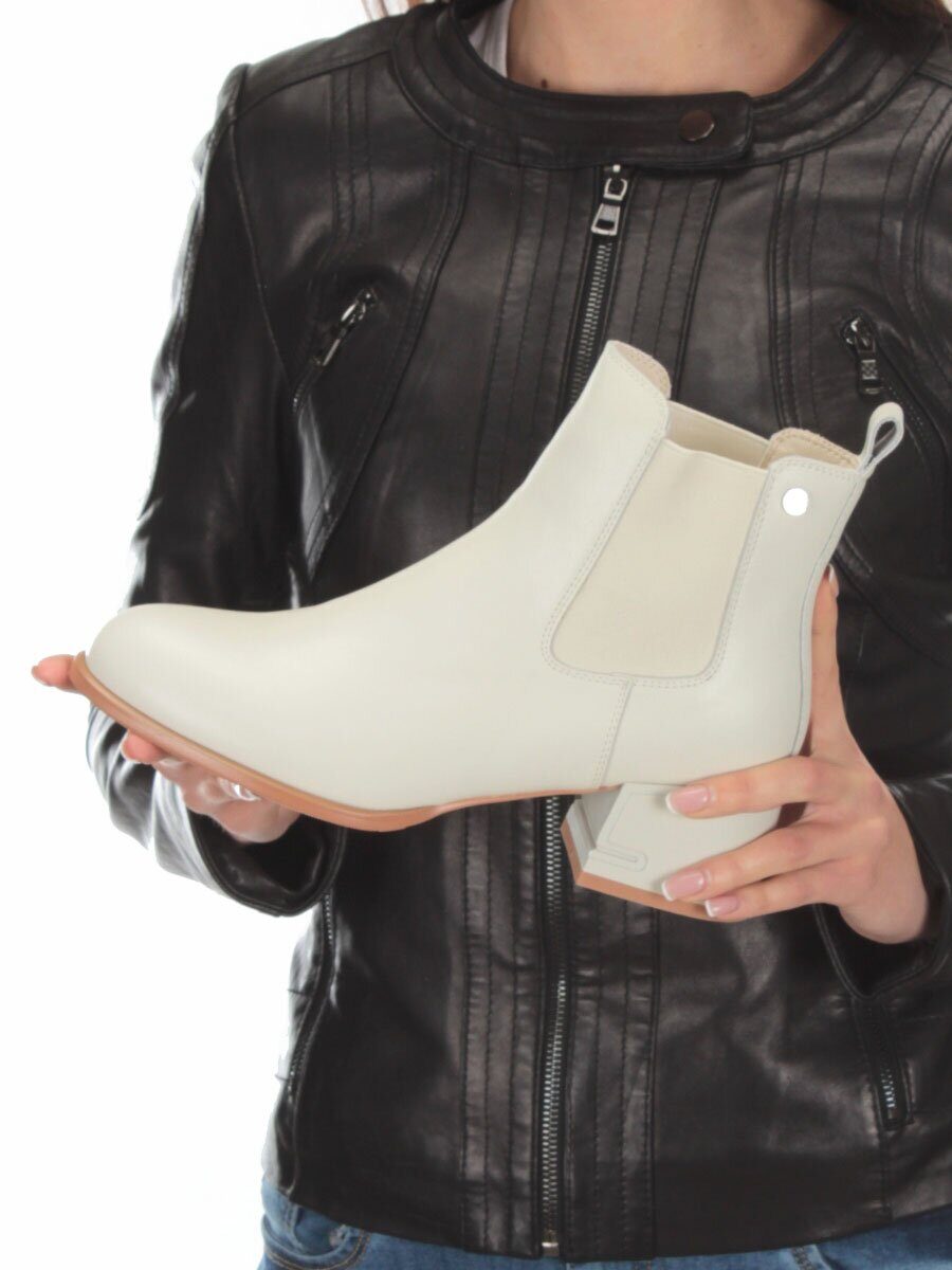 Молочный Ботинки Челси демисезонные женские (натуральная кожа, байка)