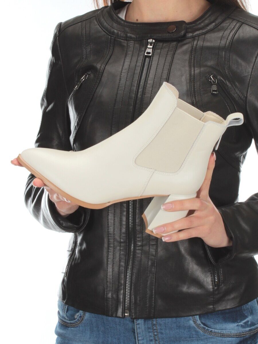 Бежевый Ботинки Челси демисезонные женские (натуральная кожа, байка)