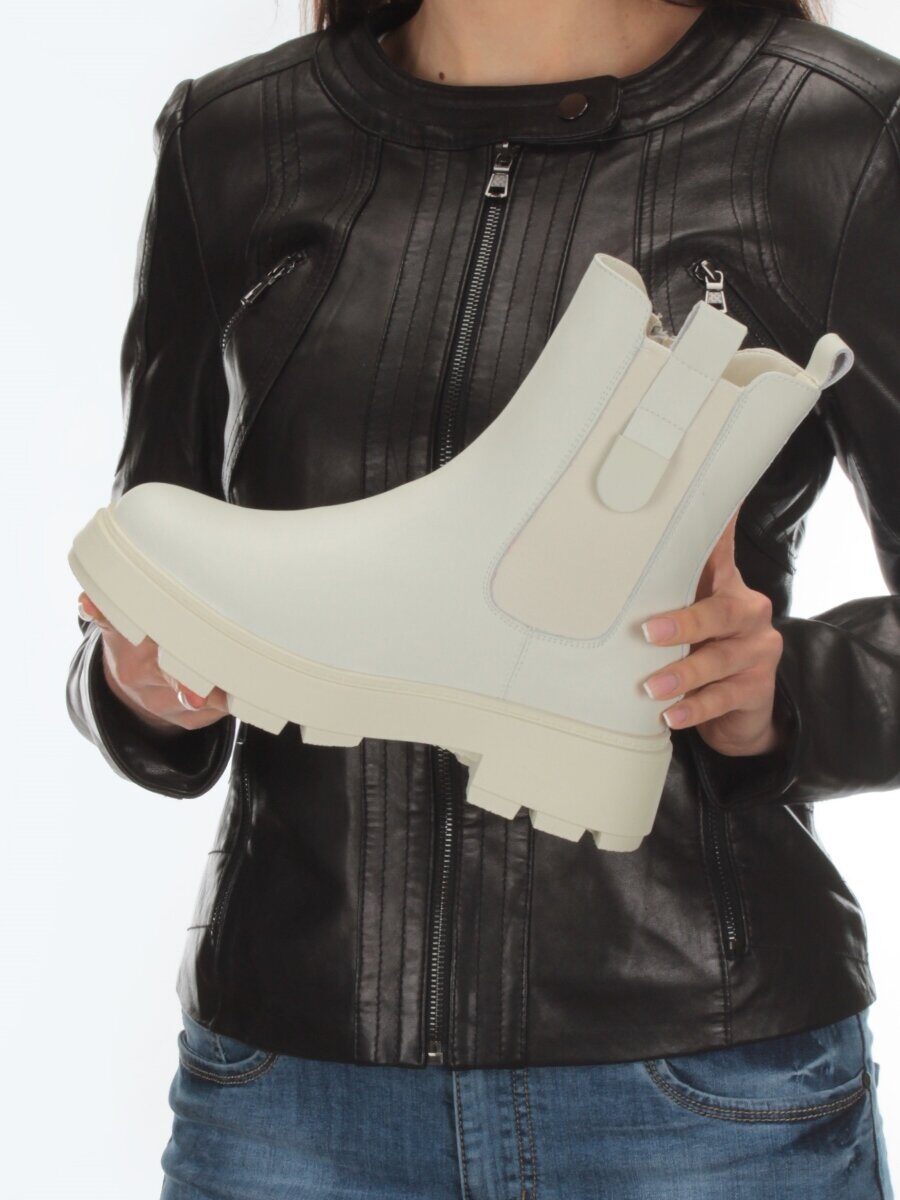 Белый Ботинки демисезонные женские (натуральная кожа, байка)