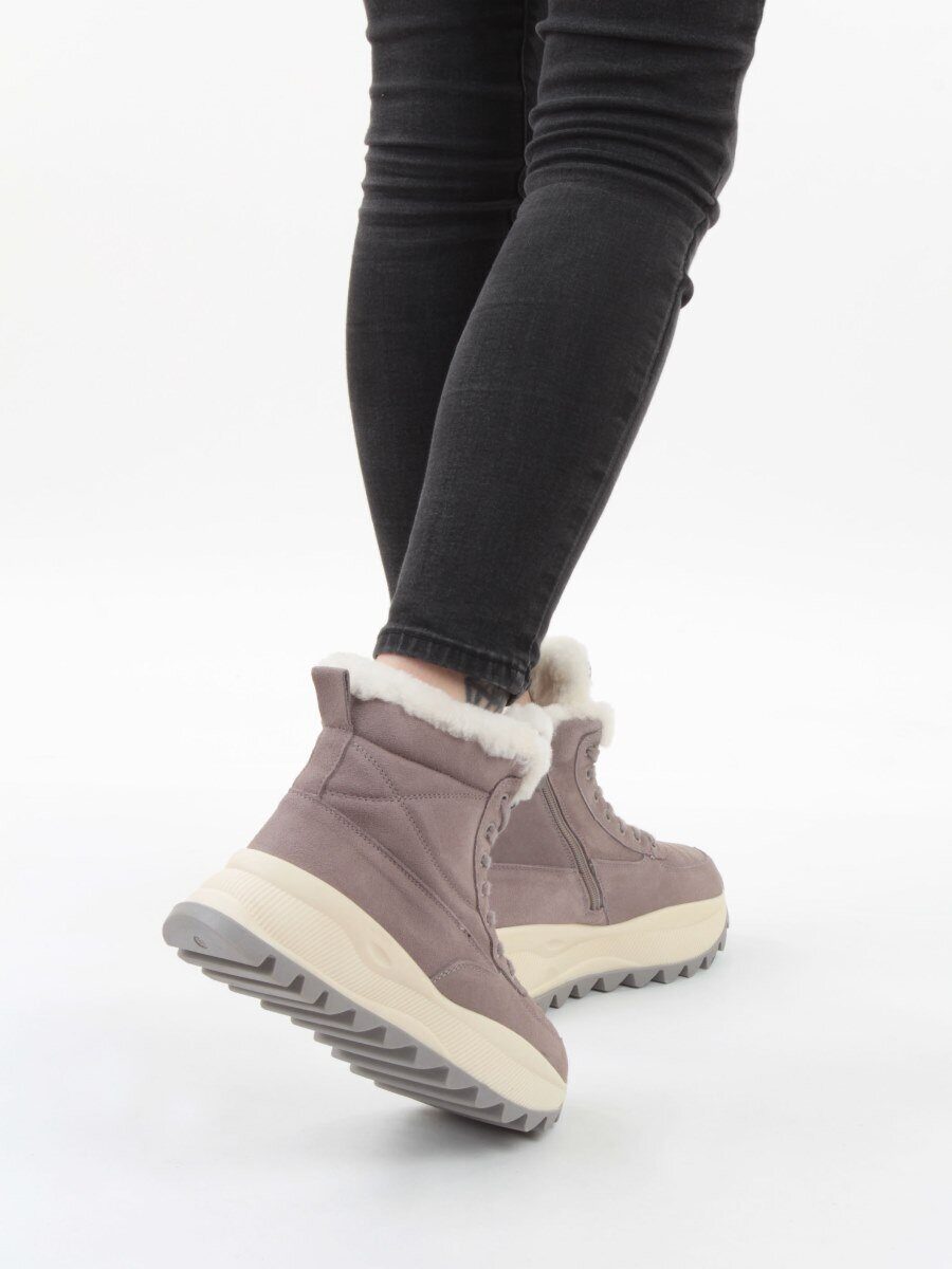 Серый Ботинки зимние женские (натуральная замша, 100% шерсть, натуральный мех)
