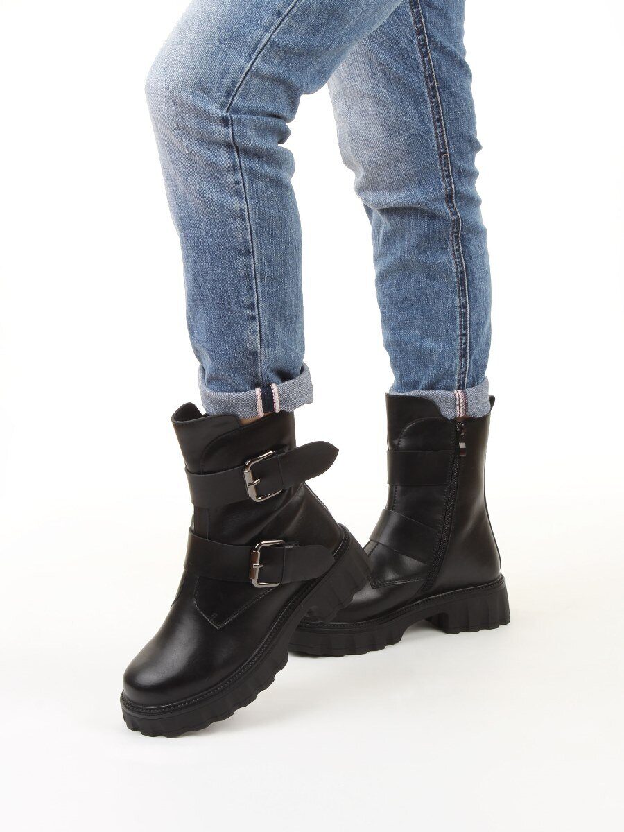 Черный Ботинки зимние женские (натуральная кожа, 100% шерсть)