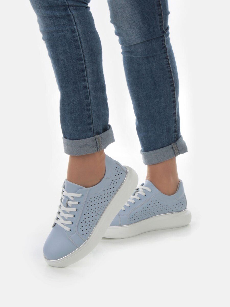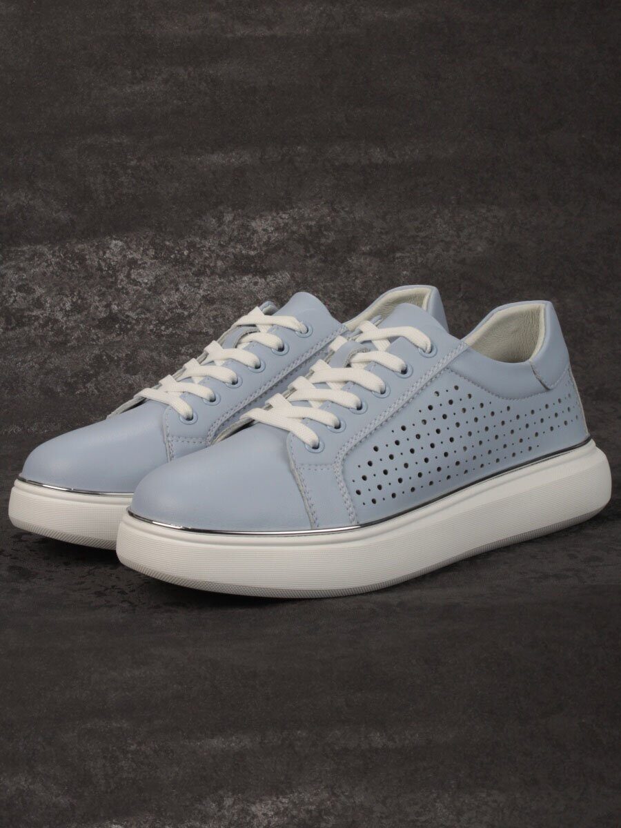 05-PDA109-2 LT. BLUE Кроссовки женские (натуральная кожа)