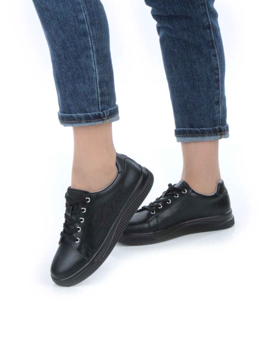 Чёрный Полуботинки спортивные женские (натуральная кожа)
