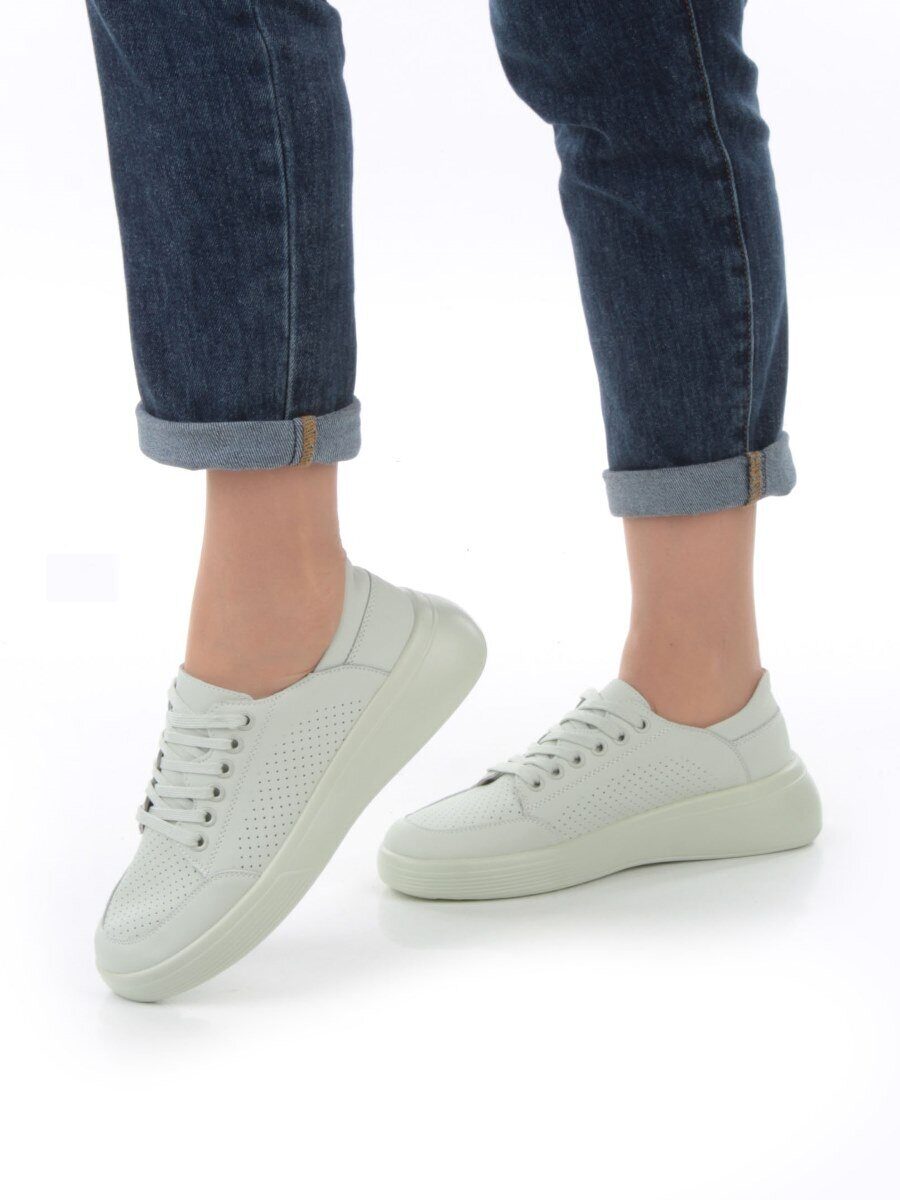 Светло-зелёный Полуботинки спортивные женские (натуральная кожа)