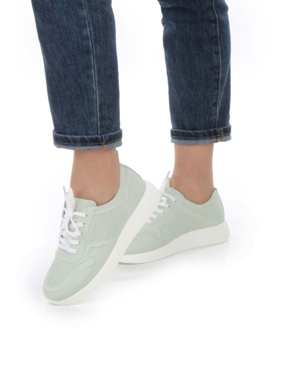Светло-зелёный Кроссовки женские (натуральная кожа)