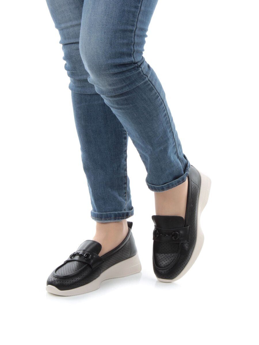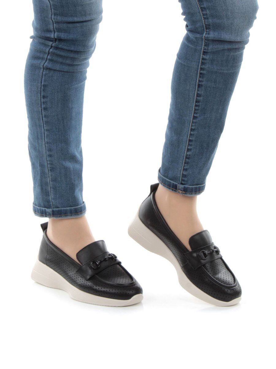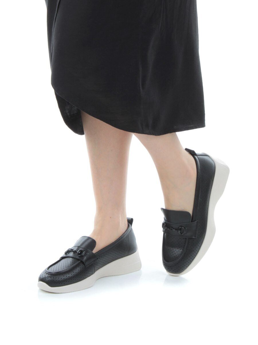 03-DXT49-3 BLACK Лоферы женские на широкую ногу (натуральная кожа)