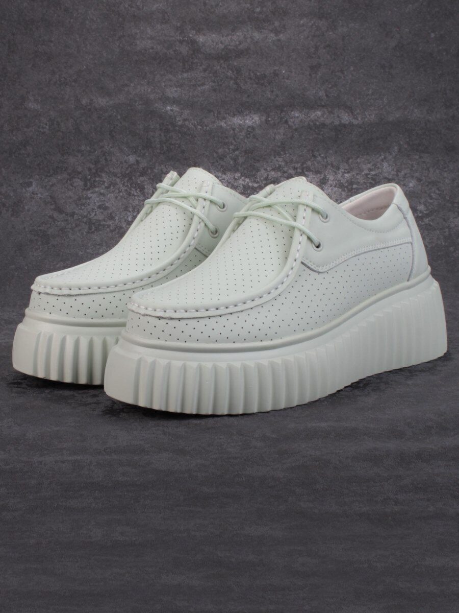 03-PDA169-4 GREEN Полуботинки женские (натуральная кожа)
