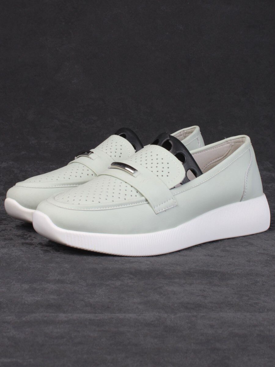 Светло-зелёный Полуботинки женские (натуральная кожа)