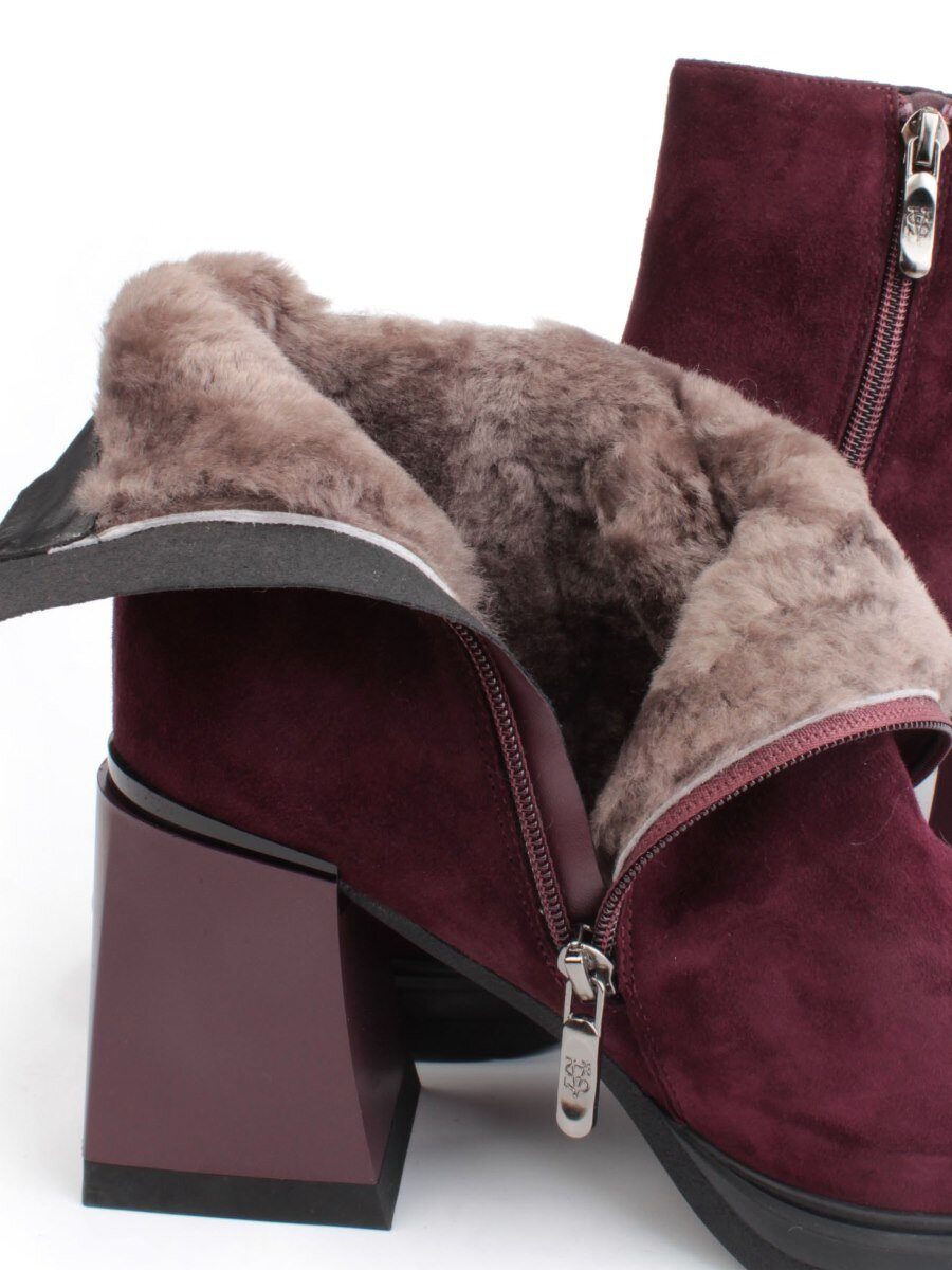 04-M3-9204 WINE Ботильоны зимние женские (натуральная кожа, натуральный мех)