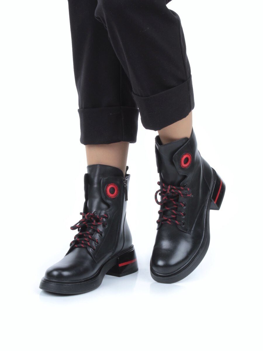 Черный с красным Ботинки демисезонные женские (натуральная кожа, байка)