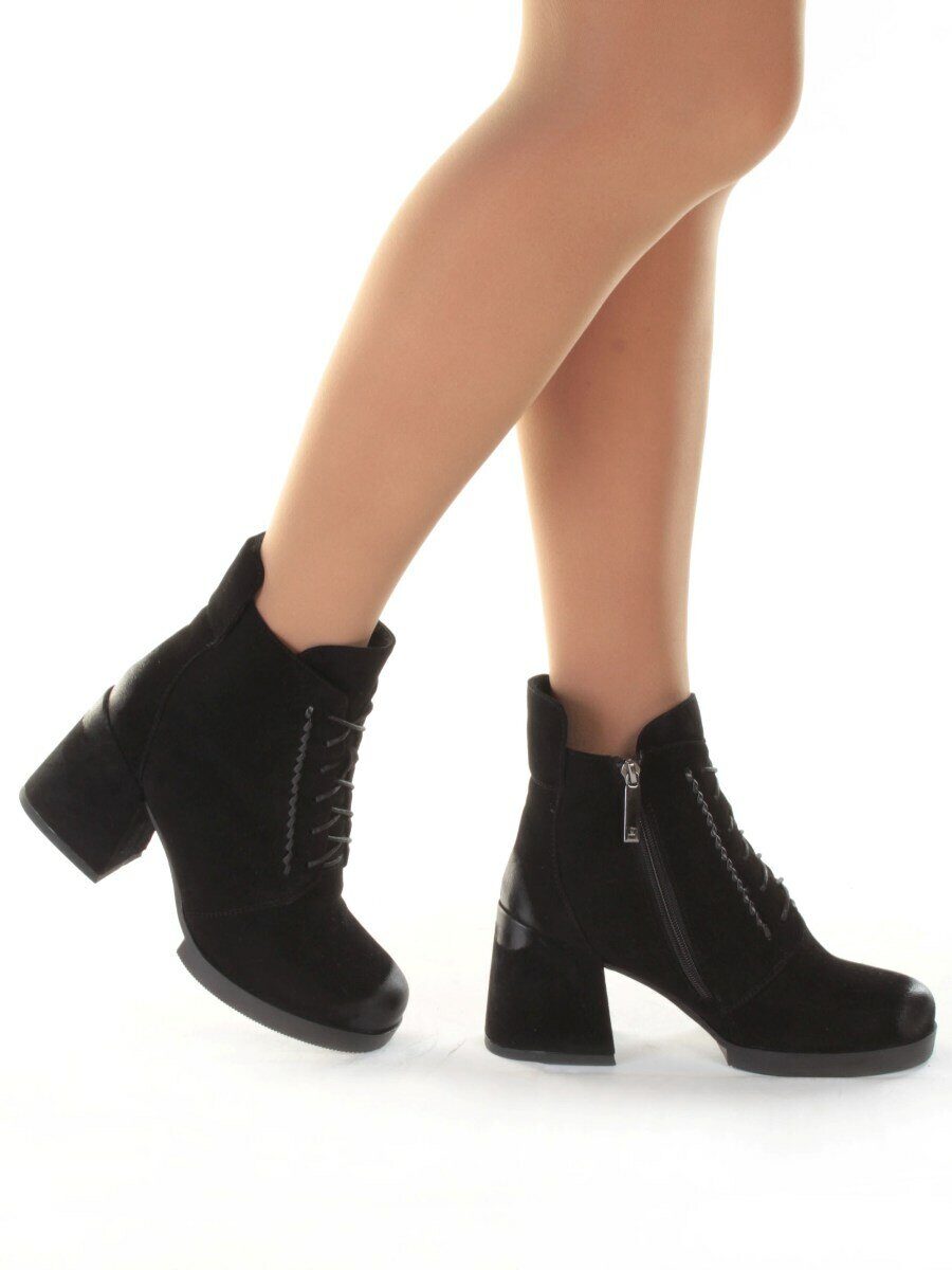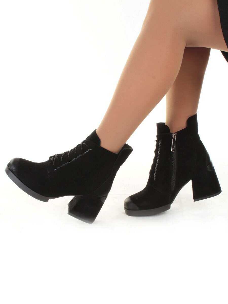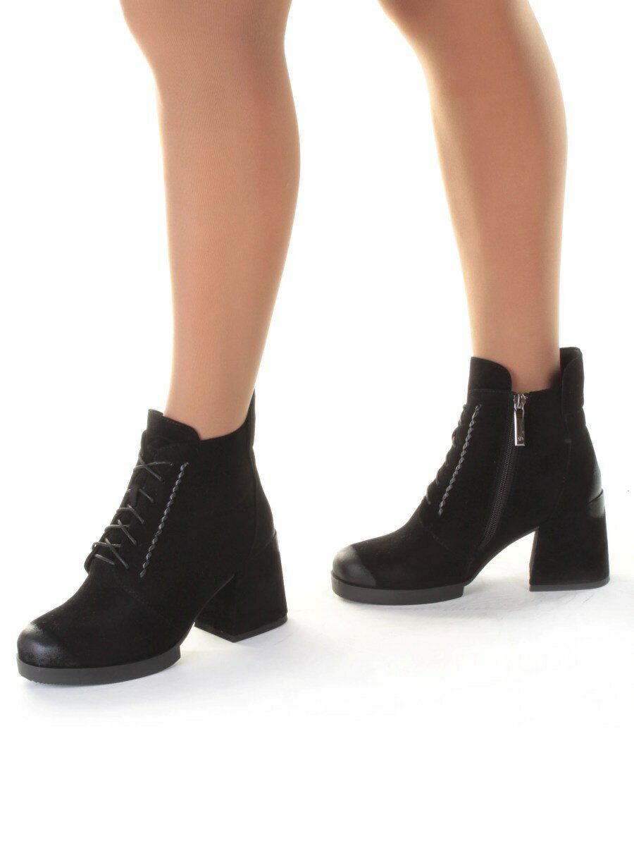 Черный Ботинки зимние женские (натуральная замша, натуральный мех)