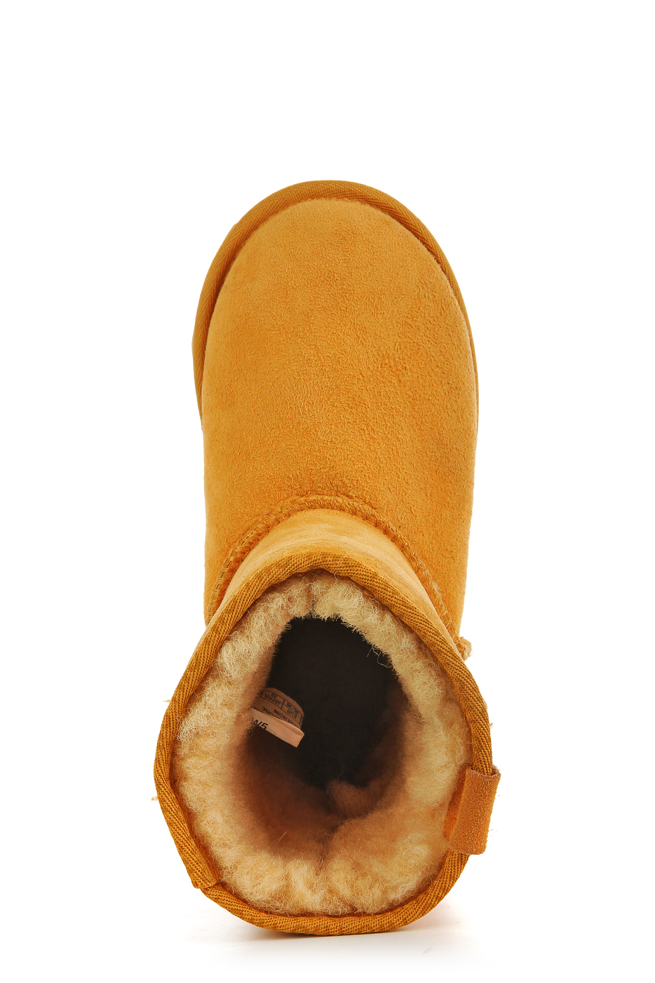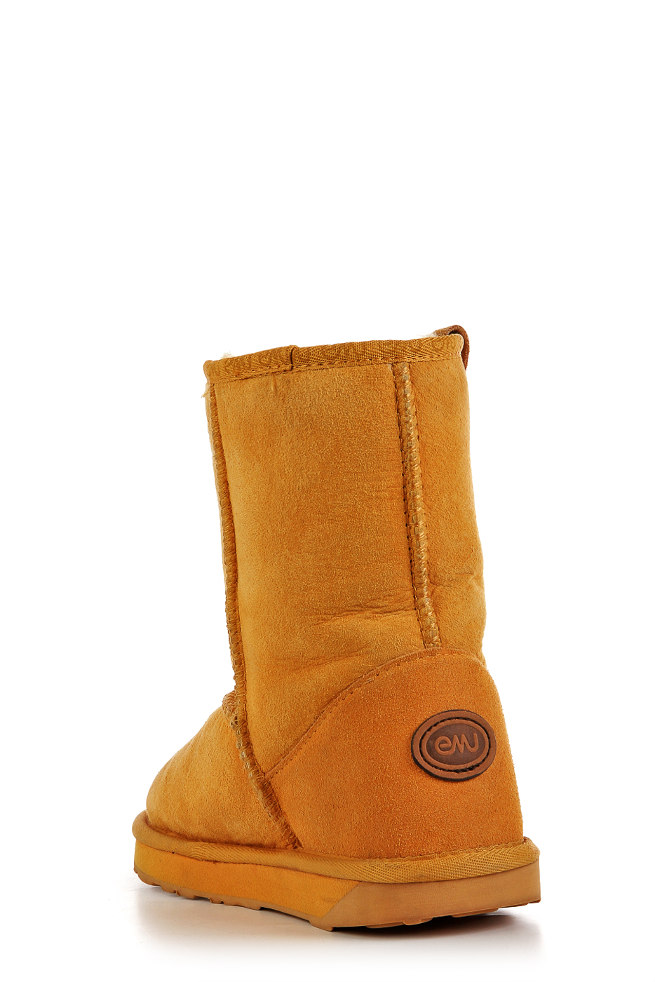 Классические полусапоги от EMU Australia в ярком золотом цвете. Выполненный из натуральной плотной замши верх оформлен объемными швами. Задник укреплен вставкой и дополнен логотипом бренда. Внутренняя отделка полностью выполнена из натуральной овечьей шерсти.