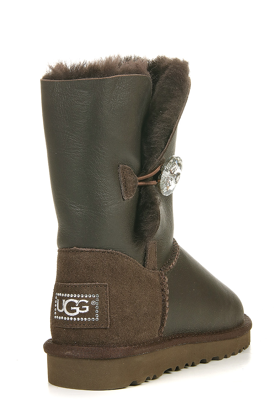 Унты выполнены из натуральной кожи, верх оформлен объемными швами. Задник укреплен вставкой и дополнен логотипом бренда. Внутренняя отделка из натуральной шерсти.