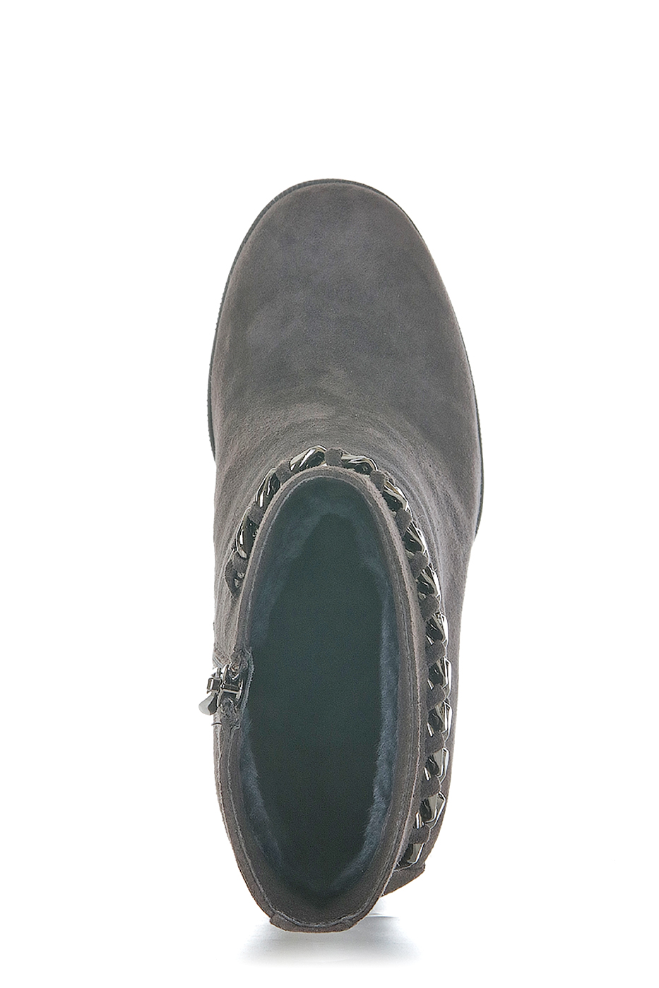 Ботинки зимние выполнены из велюра. Внутренняя отделка и стелька из натуральный мех. Детали: сбоку молния, декоративные элементы.