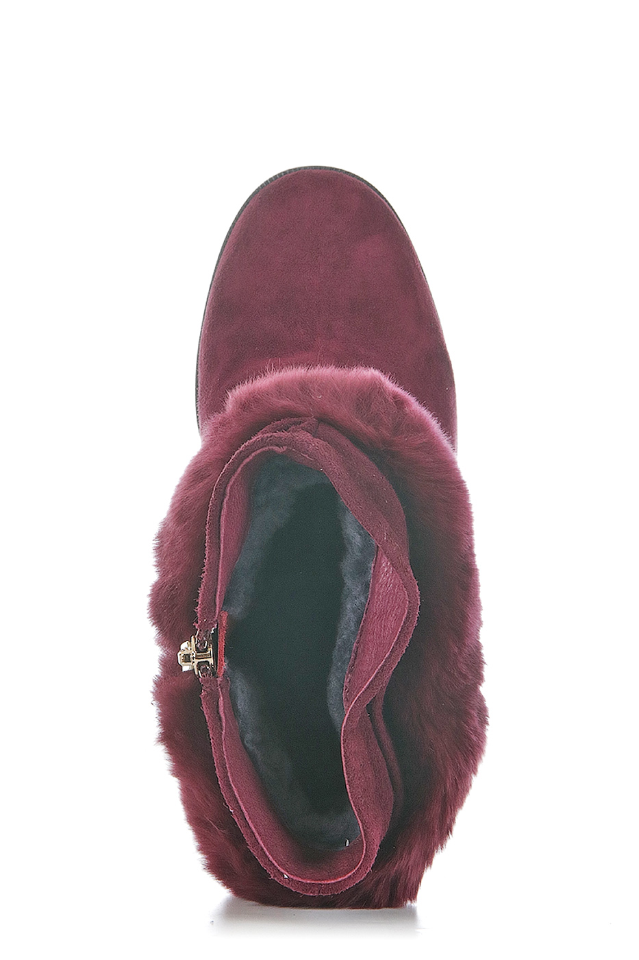 Ботинки зимние выполнены из велюра. Внутренняя отделка и стелька из натурального меха. Детали: сбоку молния, декоративные элементы.