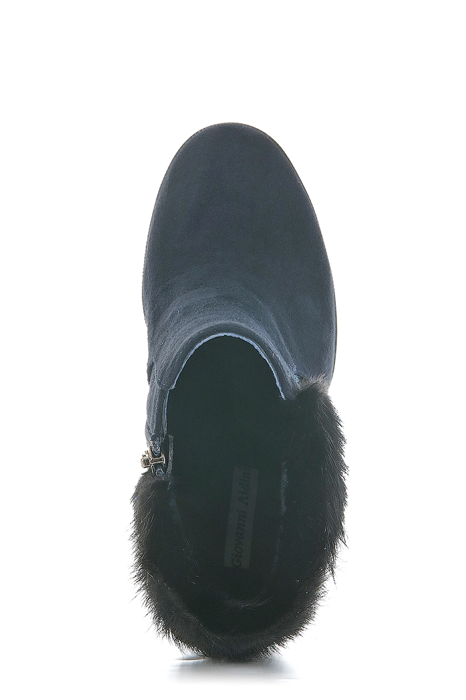Ботинки зимние выполнены из велюра. Внутренняя отделка и стелька из натурального меха. Детали: сбоку молния, декоративные элементы.