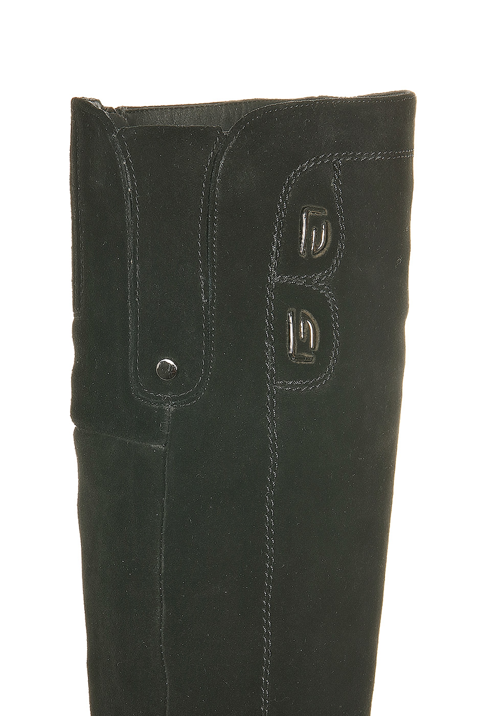 Ботфорты выполнены из велюра. Внутренняя отделка и стелька из шерсти. Детали: декоративные элементы.