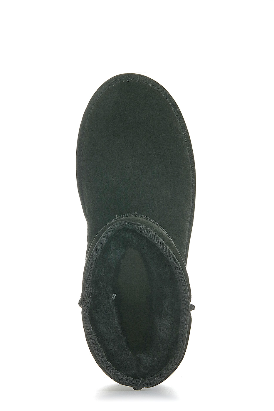 Унты выполнены из натуральной замши, верх оформлен объемными швами. Задник укреплен вставкой и дополнен логотипом бренда. Внутренняя отделка из натуральной шерсти.