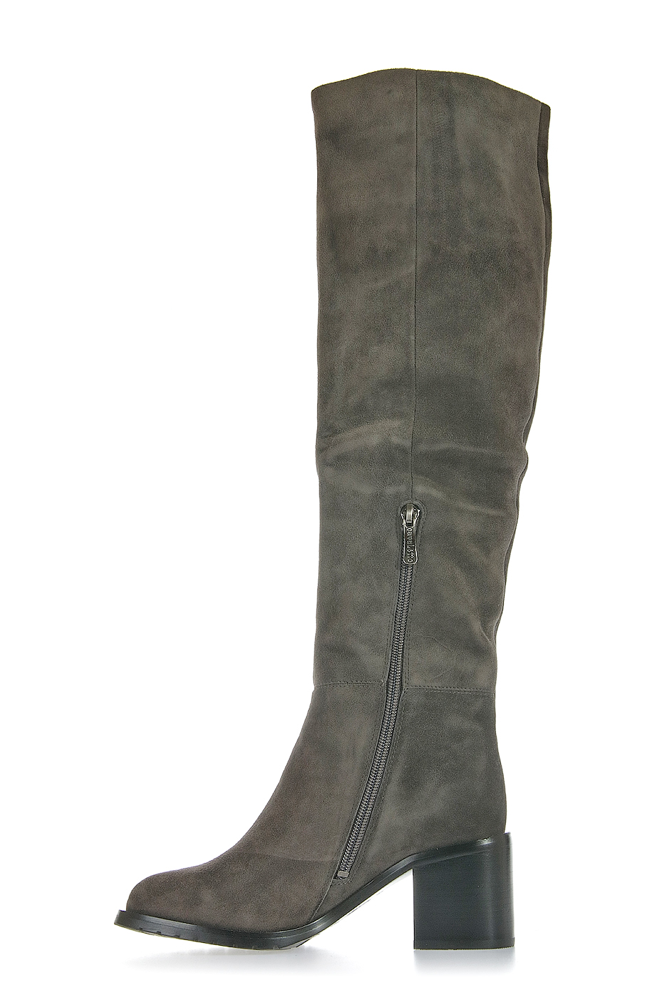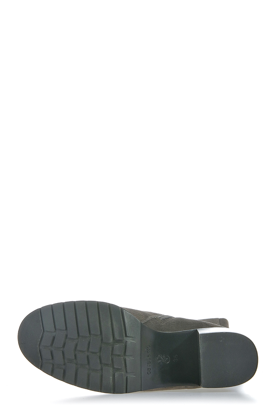 Сапоги зимние женские выполнены из натурального велюра. Подкладка и стелька из текстиля и натурального меха. Детали: сбоку молния, декоративные элементы.
