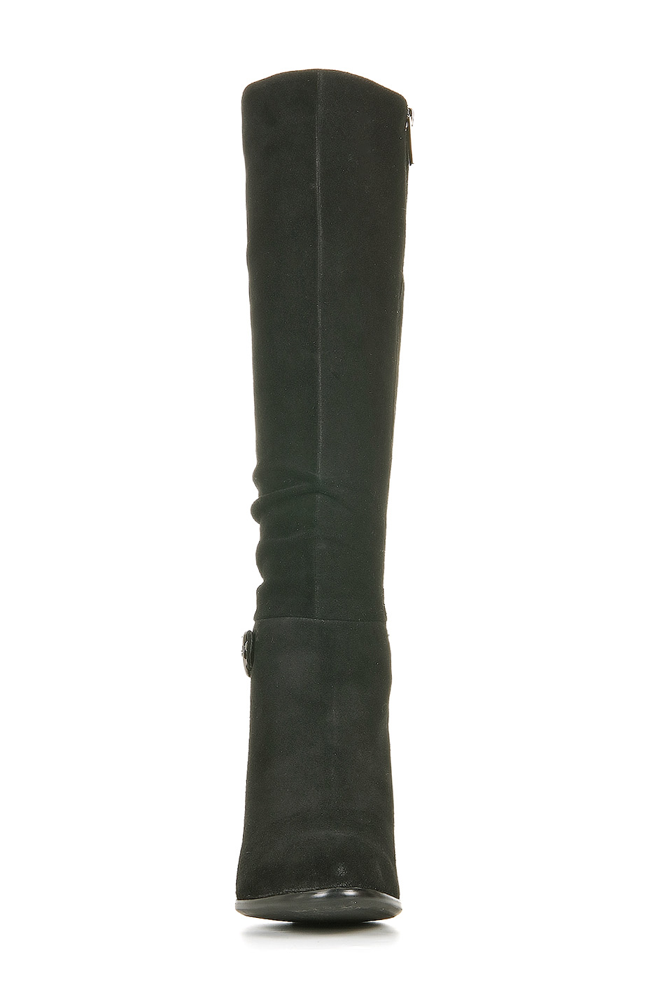 Сапоги выполнены из велюра. Внутренняя отделка и стелька из натурального меха. Детали: декоративные элементы.
