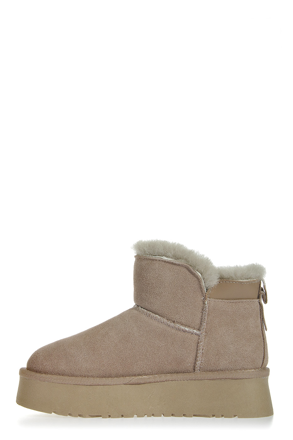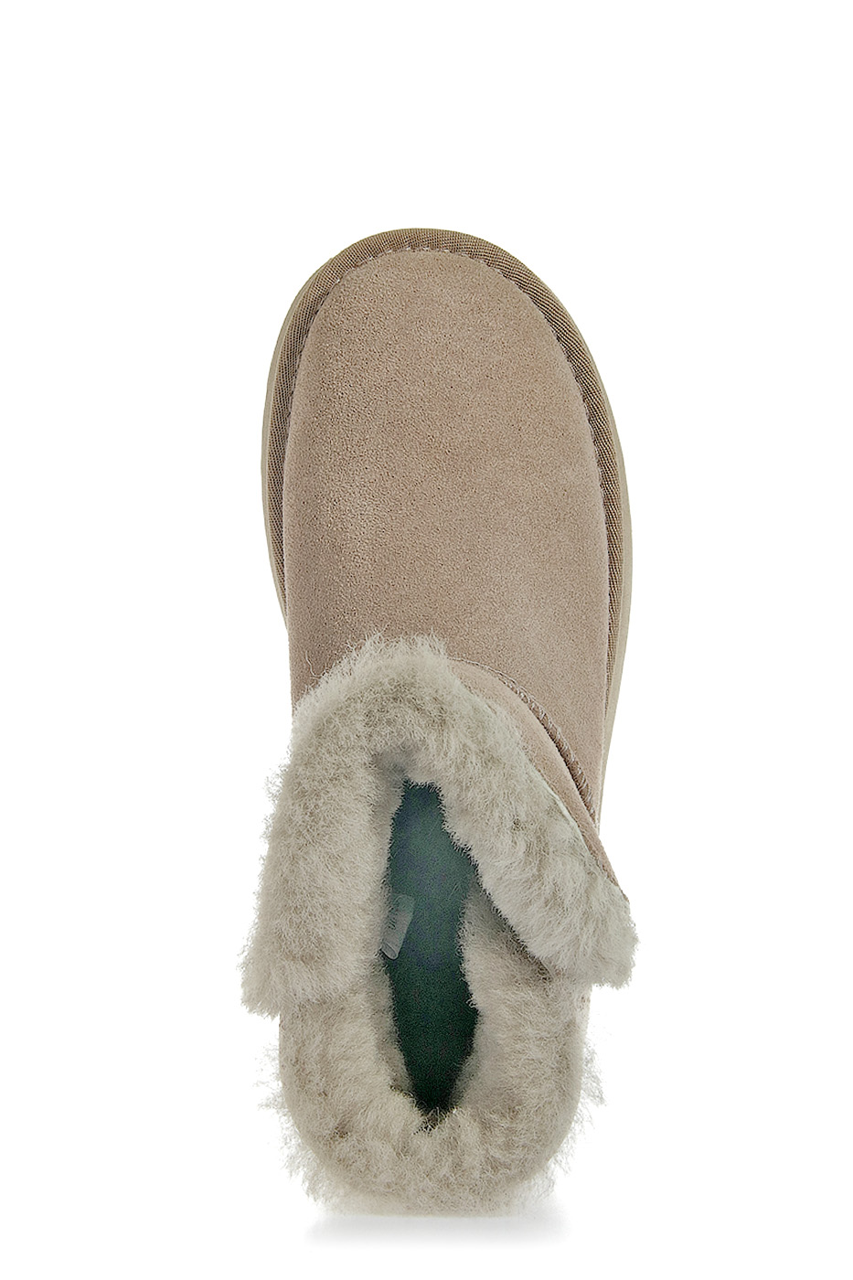 Унты выполнены из натуральной замши, верх оформлен объемными швами. Задник укреплен вставкой и дополнен логотипом бренда. Внутренняя отделка из натуральной шерсти.
