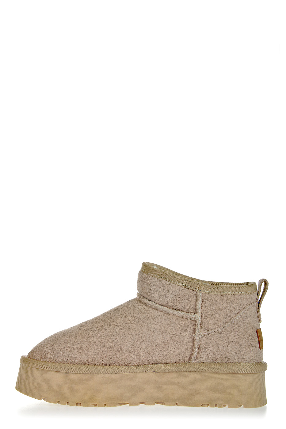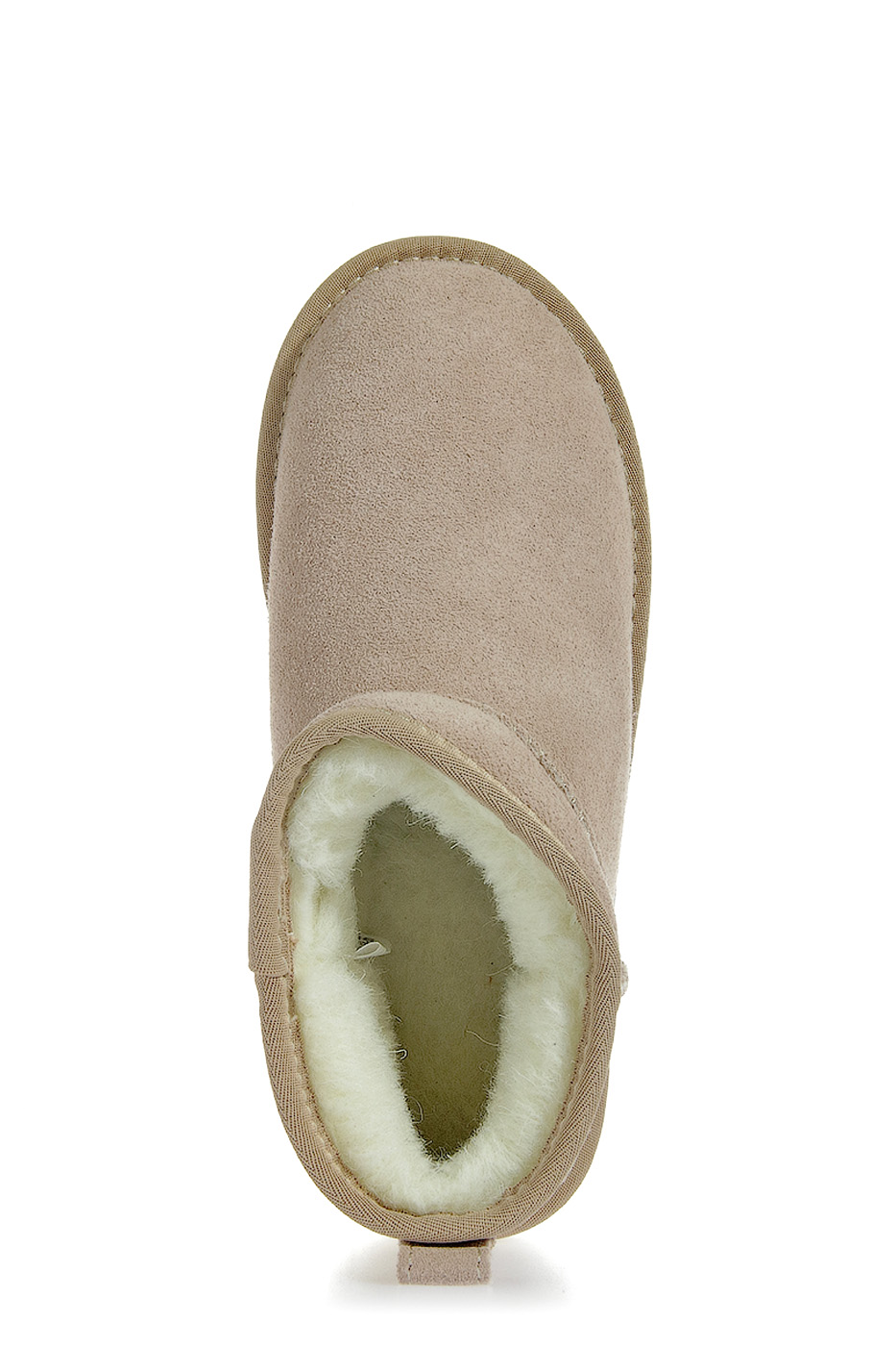 Унты выполнены из натуральной замши, верх оформлен объемными швами. Задник укреплен вставкой и дополнен логотипом бренда. Внутренняя отделка из натуральной шерсти.