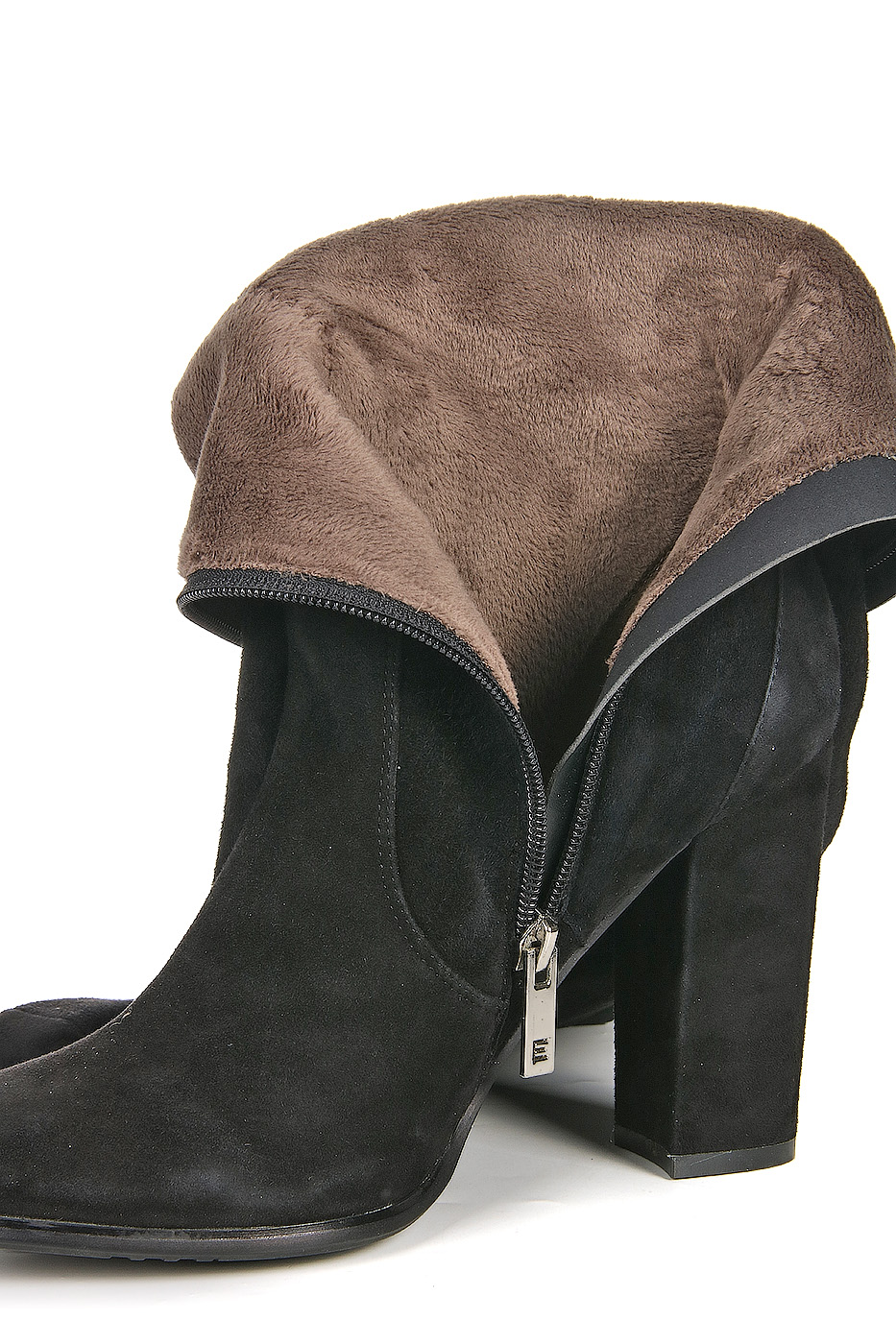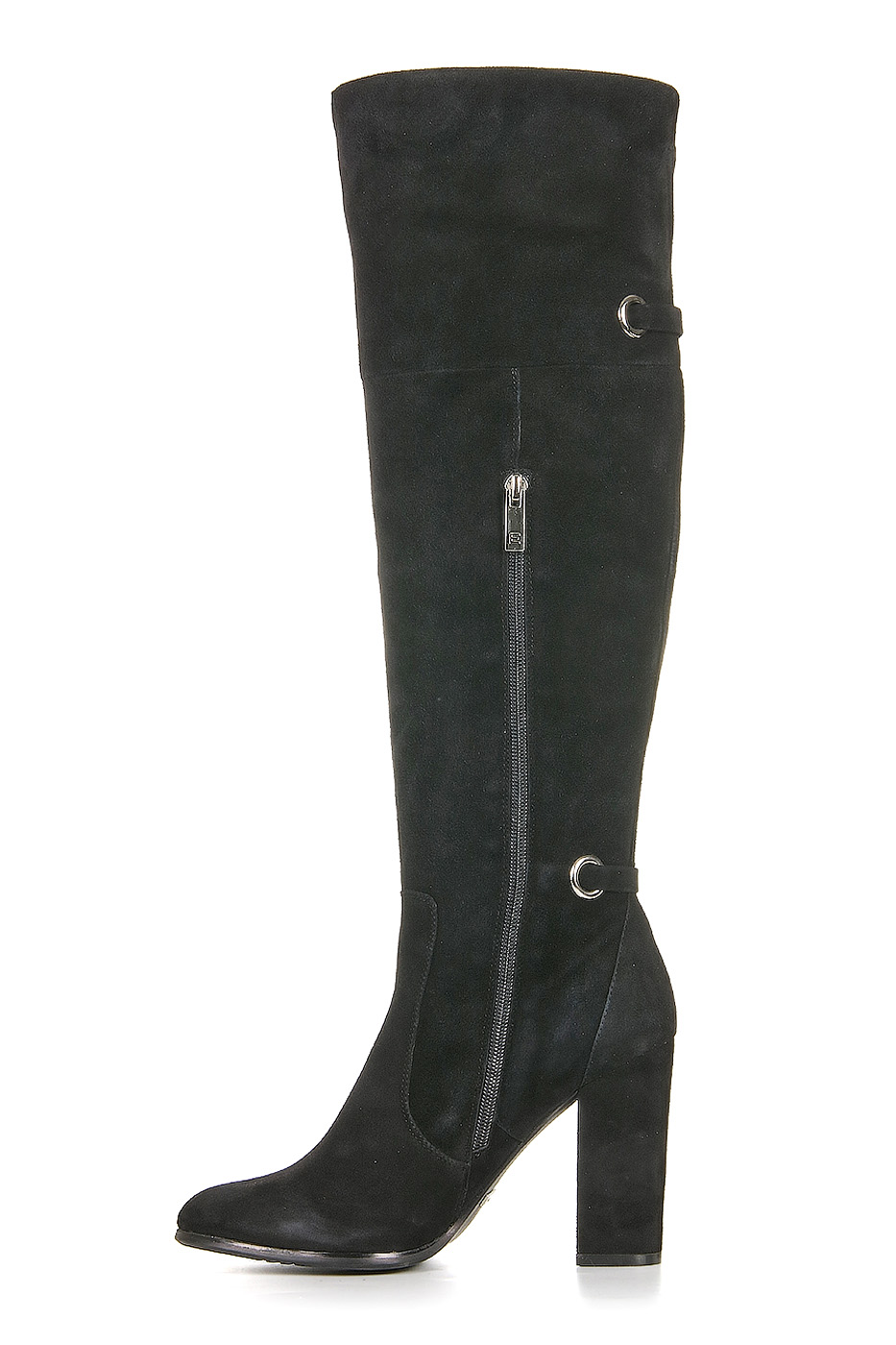 Ботфорты выполнены из велюра. Внутренняя отделка и стелька из байки. Детали: декоративные элементы, сбоку молния.