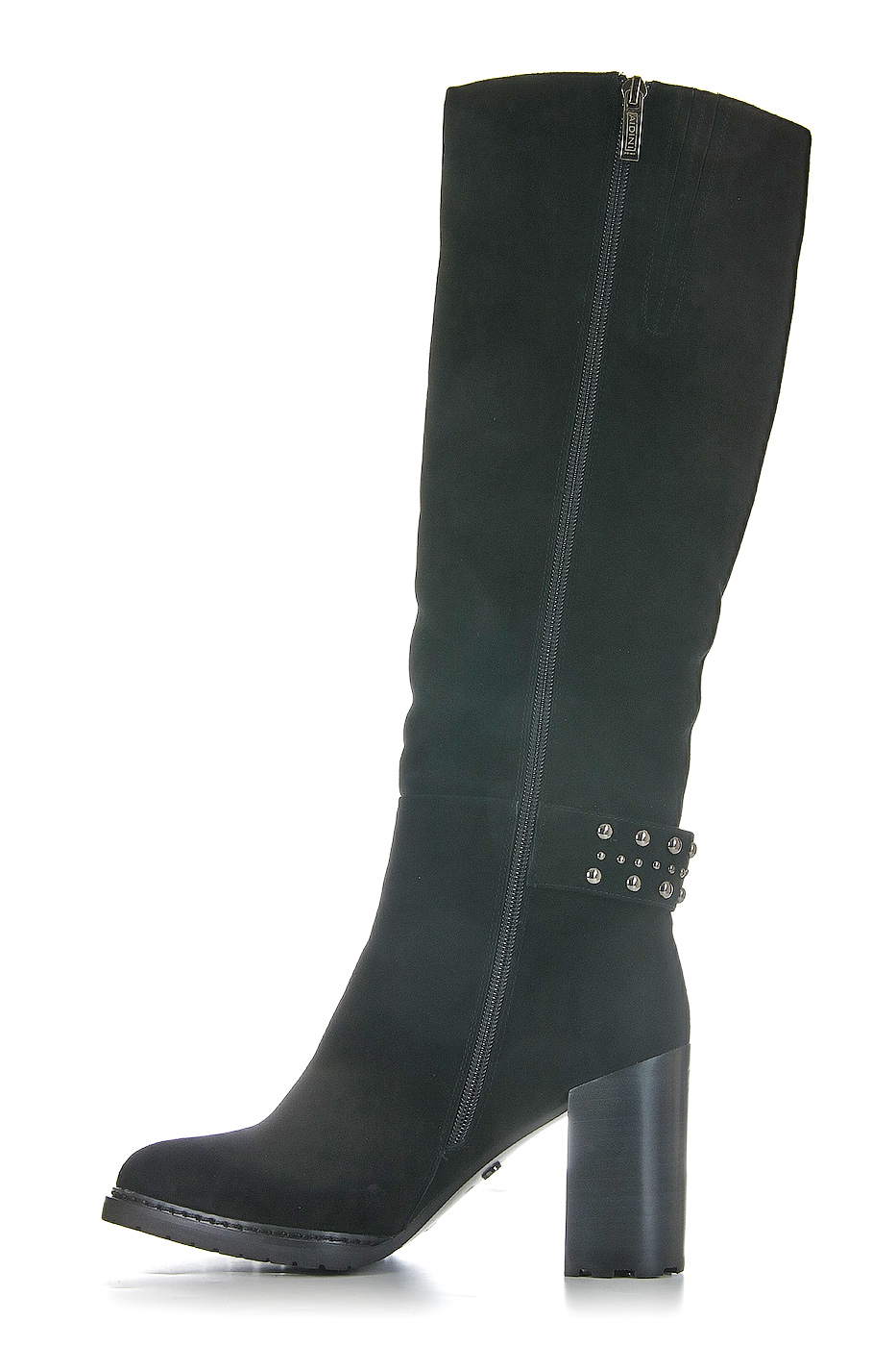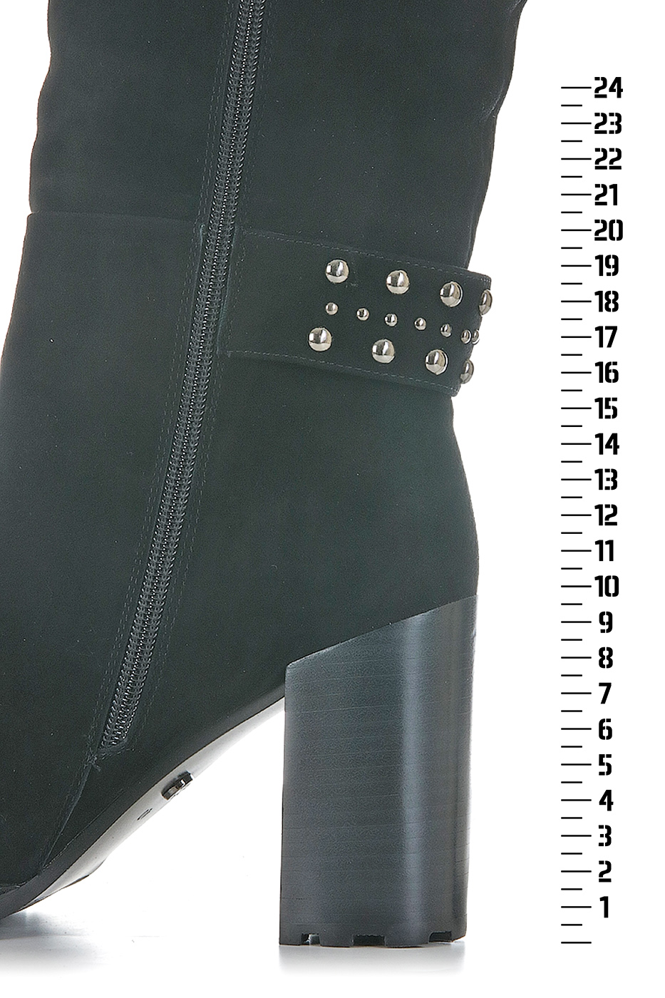 Сапоги зимние выполнены из велюра. Внутренняя отделка и стелька из натуральный мех. Детали: сбоку молния, декоративные элементы.
