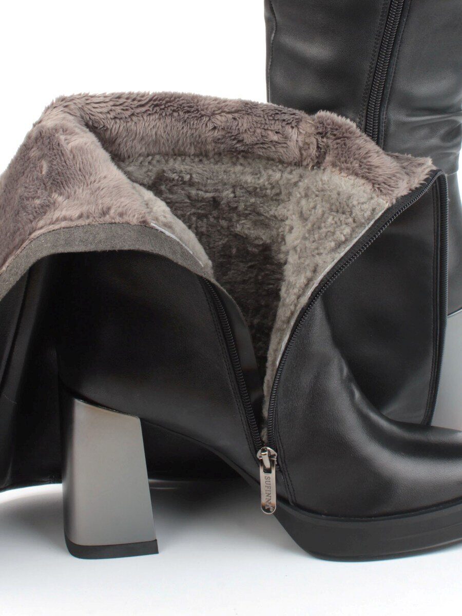 Черный Сапоги зимние женские из натуральной кожи с натуральным мехом и байкой (еврозима)