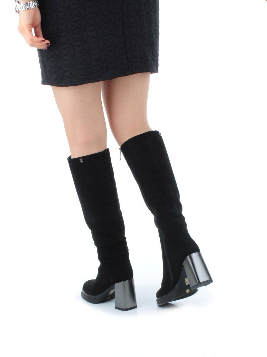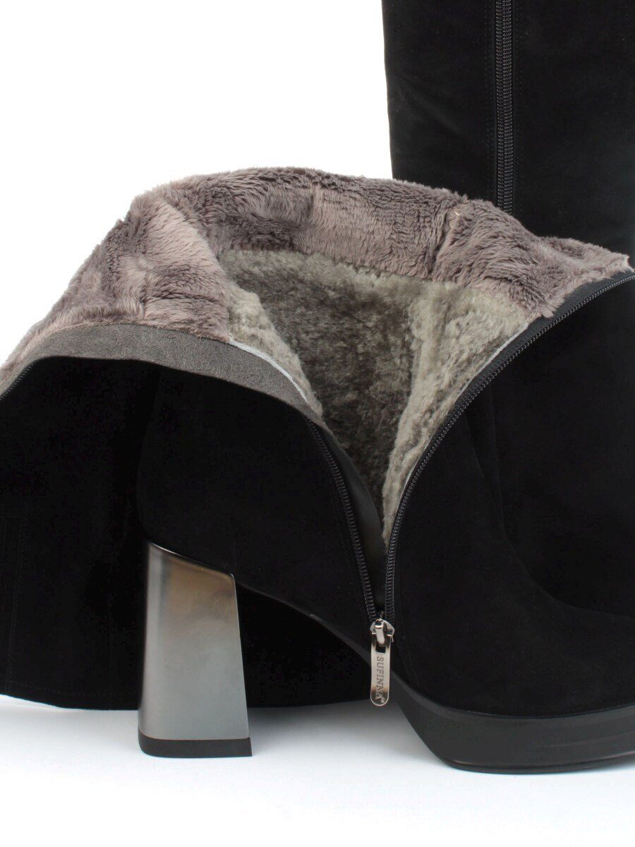 Черный Сапоги зимние женские из натуральной замши с натуральным мехом и байкой (еврозима)