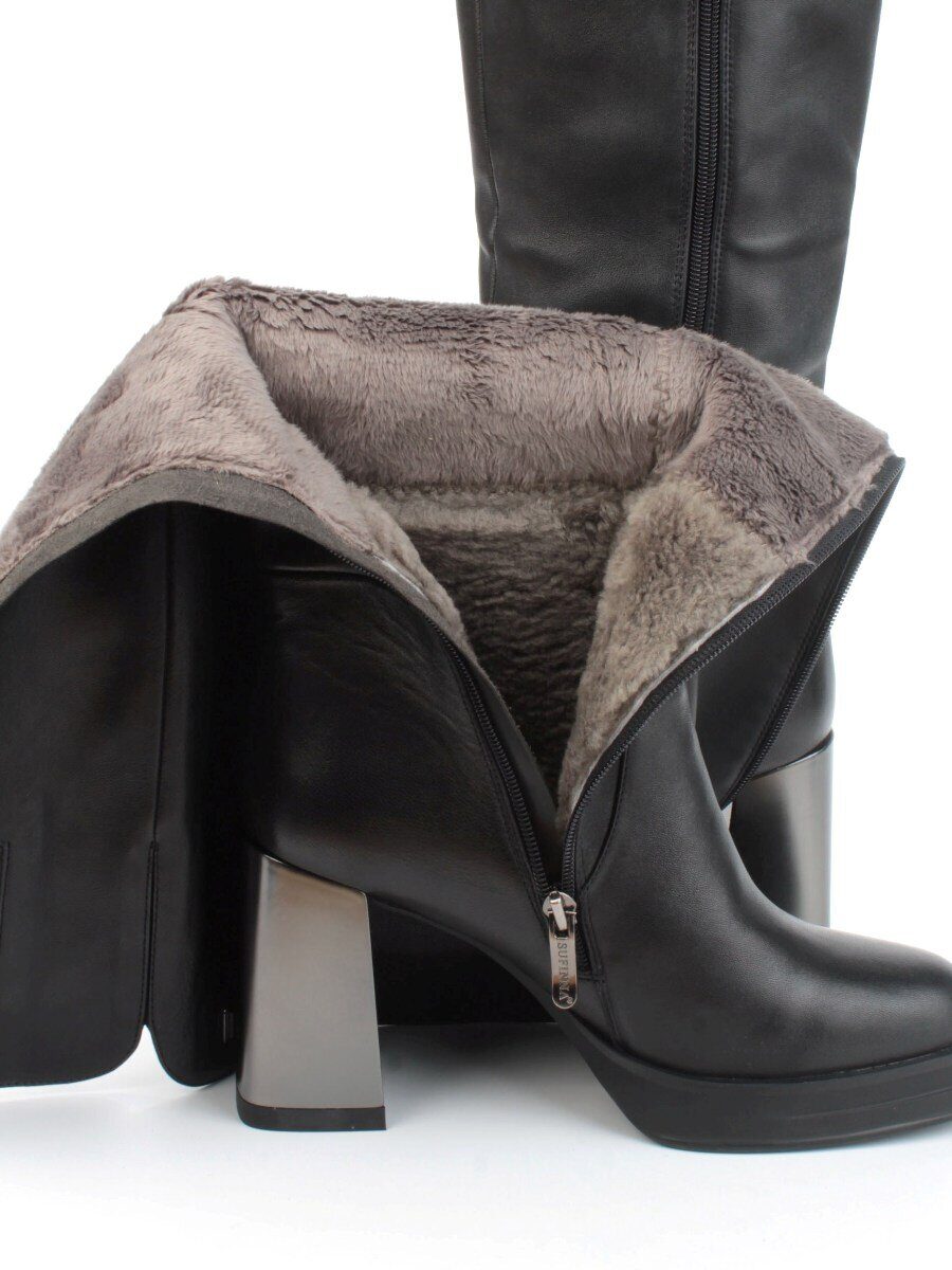 Черный Сапоги зимние женские из натуральной кожи с натуральным мехом и байкой (еврозима)