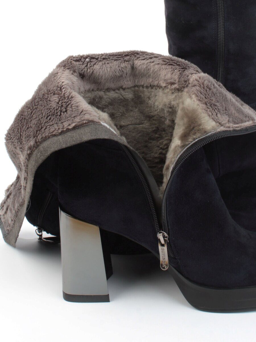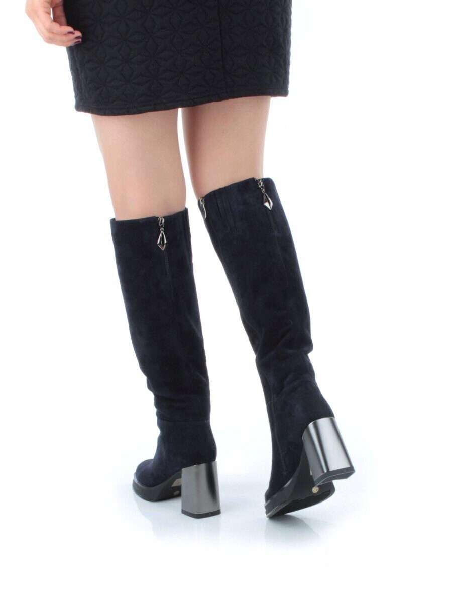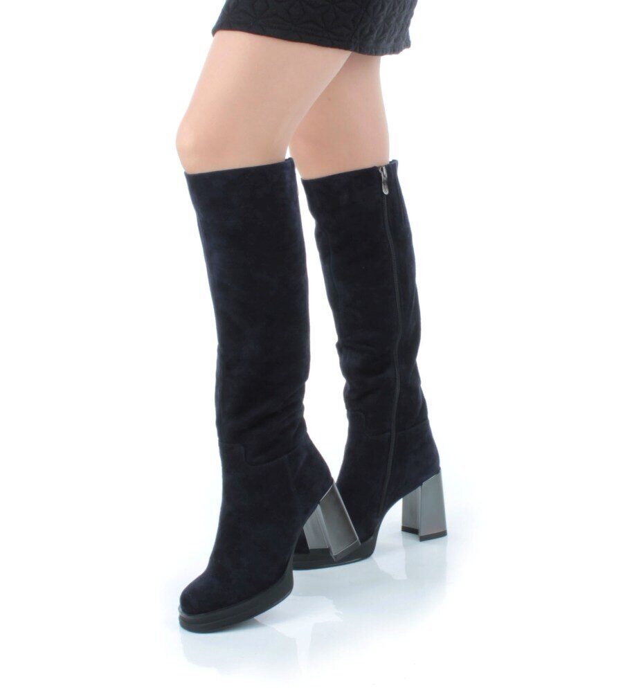 Темно-синий Сапоги зимние женские из натуральной замши с натуральным мехом и байкой (еврозима)