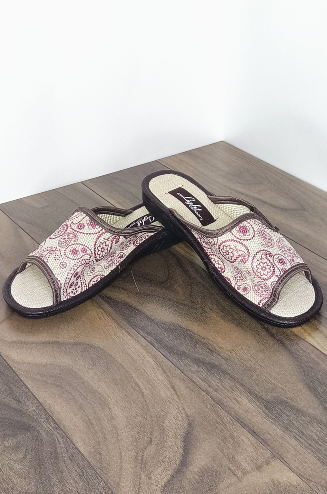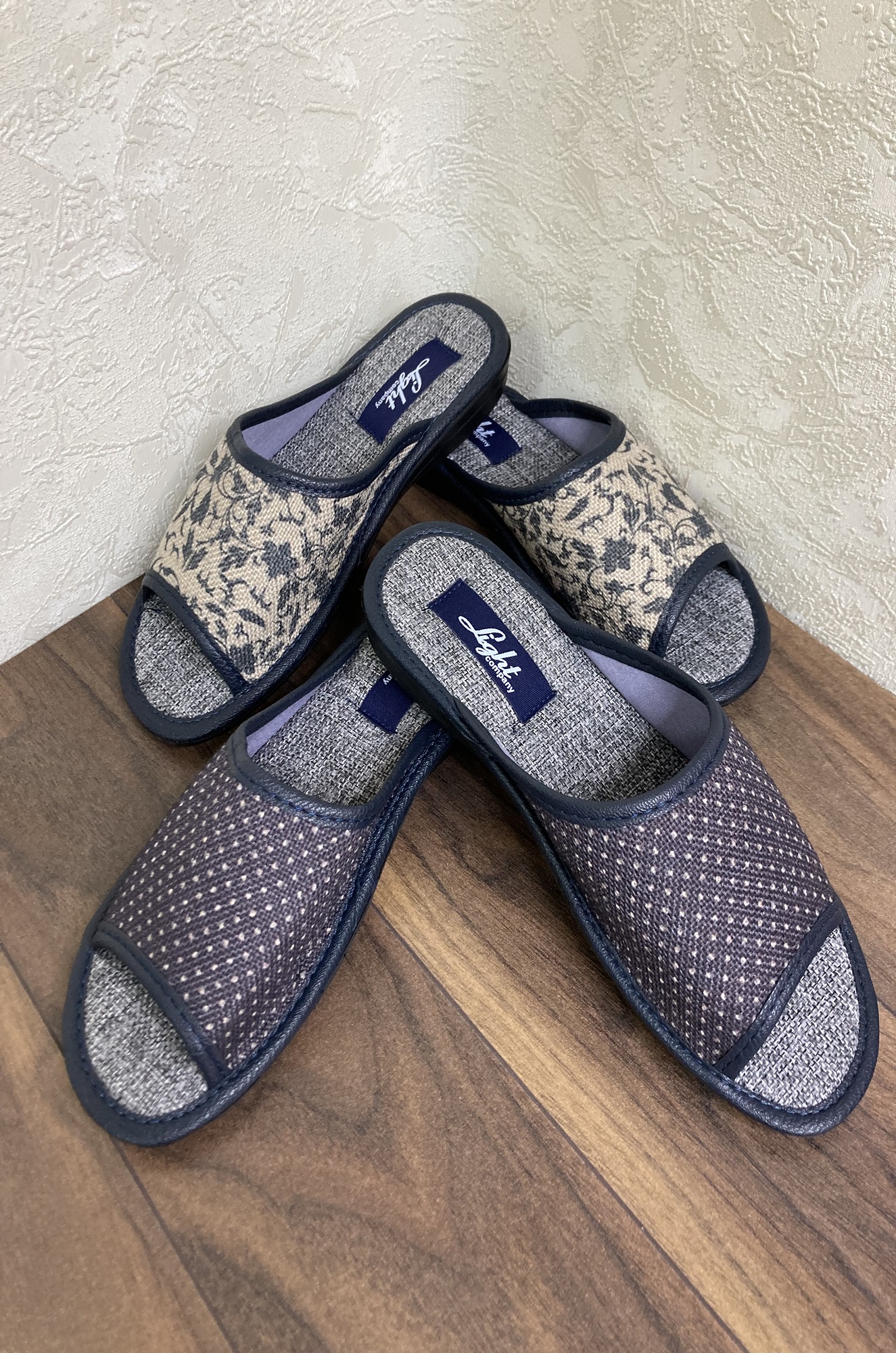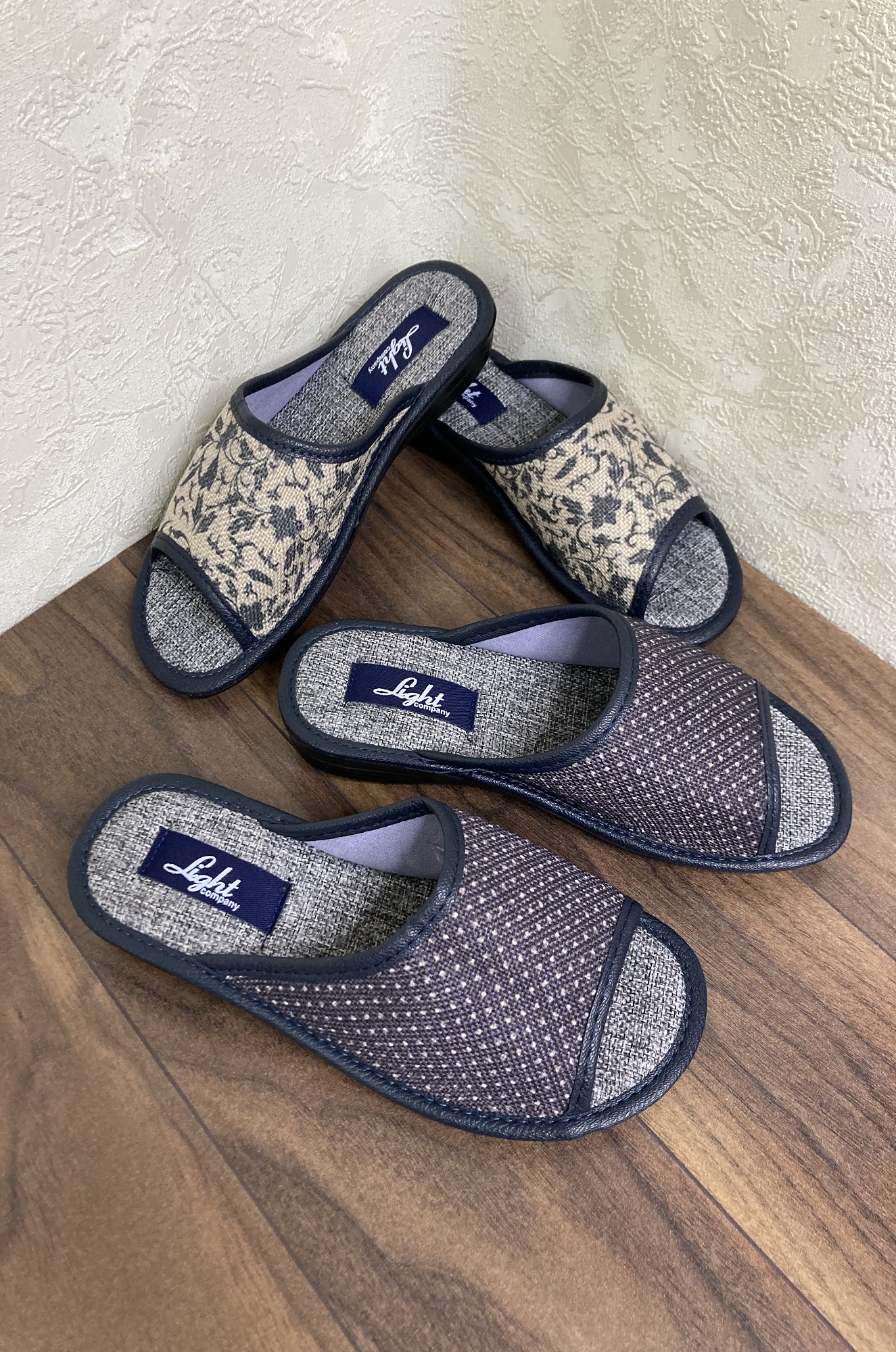 Удобные тканные тапочки. Модель с открытым носочком, подошва из ПВХ, небольшой каблучок, стелька текстильная из бамбука. Тапки лёгкие, удобно сидят по ноге. Это идеальная домашняя обувь для тех, кто заботится о здоровье и комфорте. Модель идёт в размер.