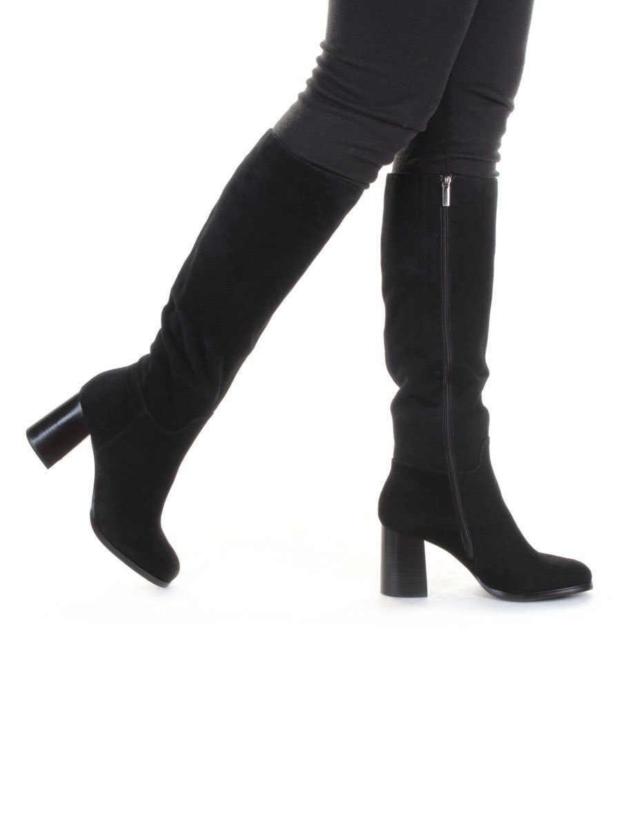 Черный (витрина) Сапоги женские (натуральная замша, натуральный мех (евромех))