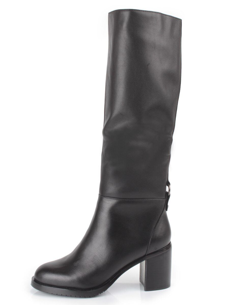Черный Сапоги зимние женские из натуральной кожи с натуральной байкой