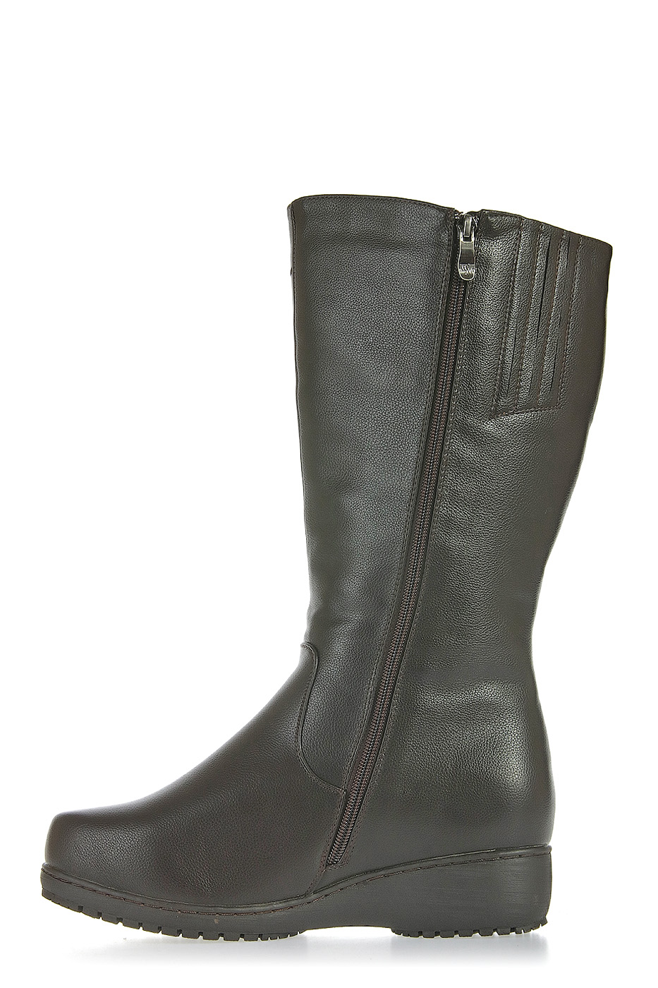 Сапоги женские выполнены из искусственной кожи. Подкладка и стелька из искусственного меха. Детали: декоративные элементы.