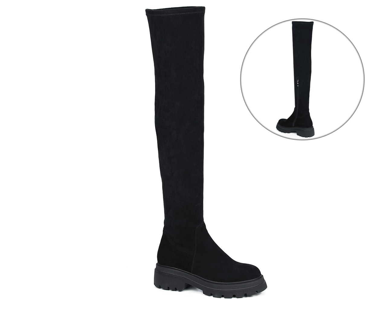 Сапоги жен велюр черн (верхняя часть голенища эластичный бархат) 4590 ру с 36 по 40 ЕВРОЗИМА на нат шерсти