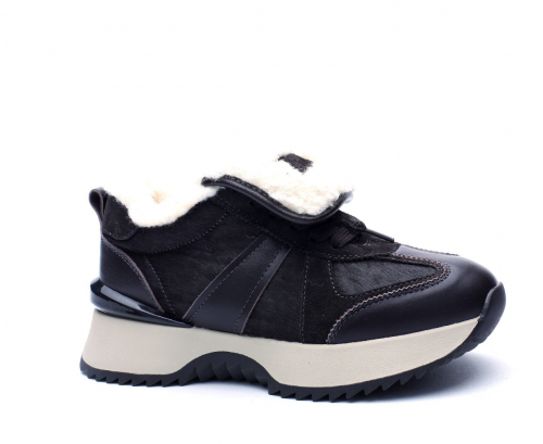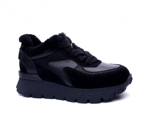Кроссовки жен черн кож-велюр 3980 ру с 36 по 40 ЗИМА на нат шерсти
