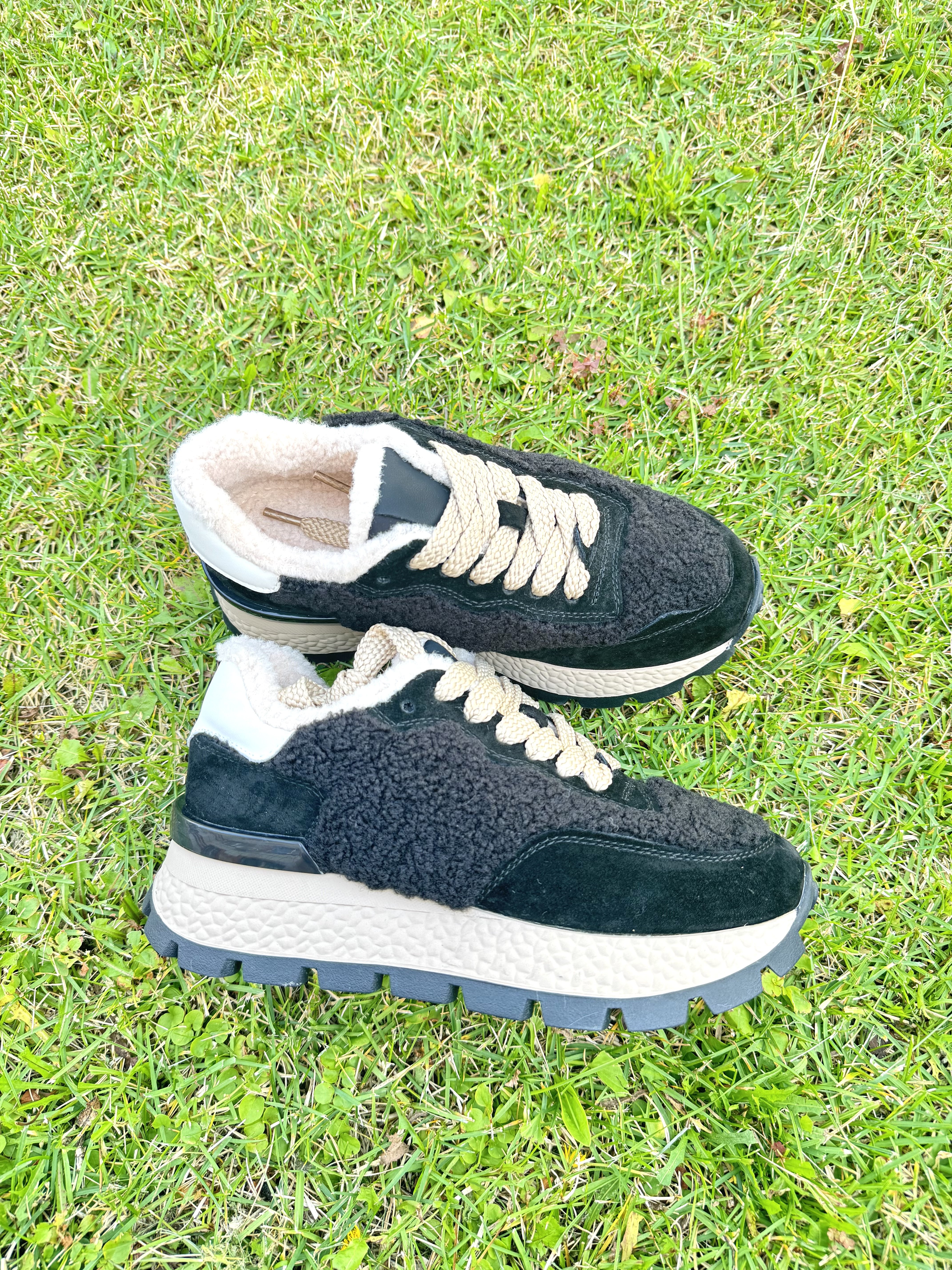 Кроссовки жен черн велюр ЗИМА на экошерсти