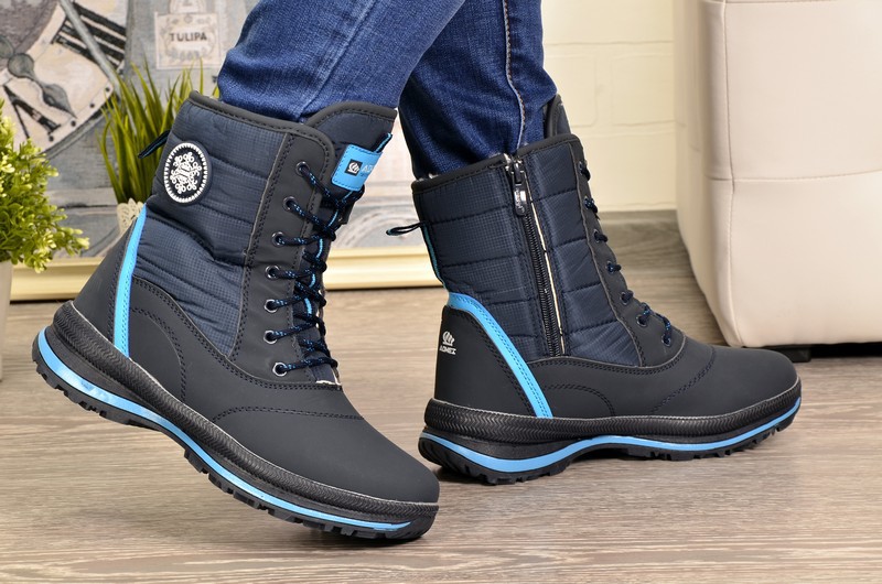 Aowei B2616-9-МП/Z Ботинки женские син нейлон+иск нубук, подклад иск мех